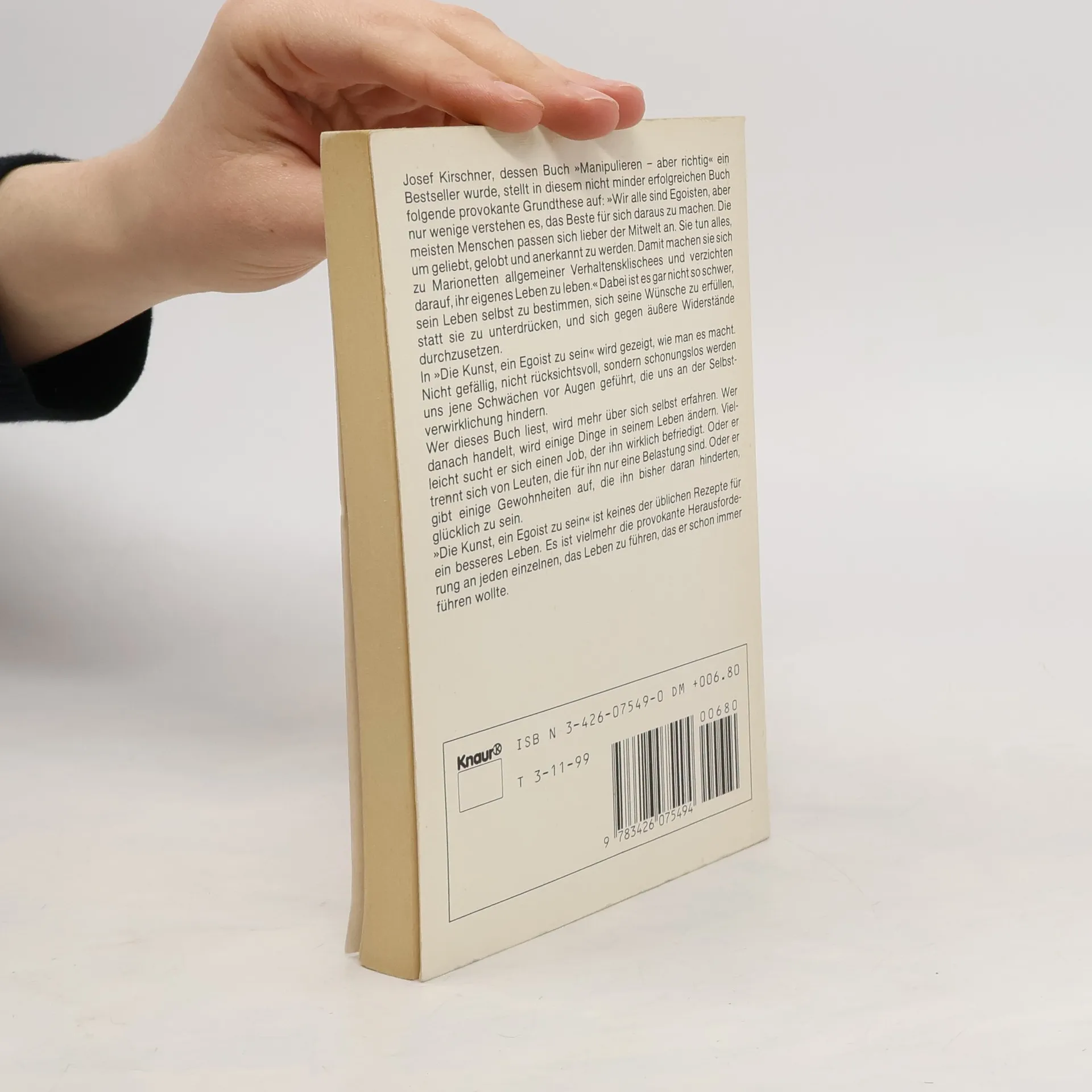 Josef Kirschner, dessen Buch \"Manipulieren - aber richtig\" ein Bestseller wurde, stellt in diesem nicht minder erfolgreichen Buch folgende provokante Grundthese auf: \"Wir alle sind Egoisten, aber nur wenige verstehen es, das Beste für sich daraus zu machen. Die meisten Menschen passen sich lieber der Mitwelt an. Sie tun alles, um geliebt, gelobt und anerkannt zu werden. Damit machen sie sich zu Marionetten allgemeiner Verhaltensklischees und verzichten darauf, ihr eigenes Leben zu leben.\" Dabei ist es gar nicht so schwer, sein Leben selbst zu bestimmen, sich seine Wünsche zu erfüllen, statt sie zu unterdrücken, und sich gegen äußere Widerstände durchzusetzen. In diesem Buch wird gezeigt, wie man es macht. Nicht gefällig, nicht rücksichtsoll, sondern schonungslos werden uns jene Schwächen vor Augen geführt, die uns an der Selbstverwirklichung hindern. Wer dieses Buch liest, wird mehr über sich selbst erfahren. Wer danach handelt, wird einige Dinge in seinem Leben ändern. Vielleicht sucht er sich einen Job, der ihn wirklich befriedigt. Oder er trennt sich von Leuten, die für ihn nur eine Belastung sind. Oder er gibt einige Gewohnheiten auf, die ihn bisher daran hinderten, glücklich zu sein. \"Die Kunst, ein Egoist zu sein\" ist keines der üblichen Rezepte für ein besseres Leben. Es ist vielmehr die provokante Herausforderung an jeden einzelnen, das Leben zu führen, das er schon immer führen wollte.