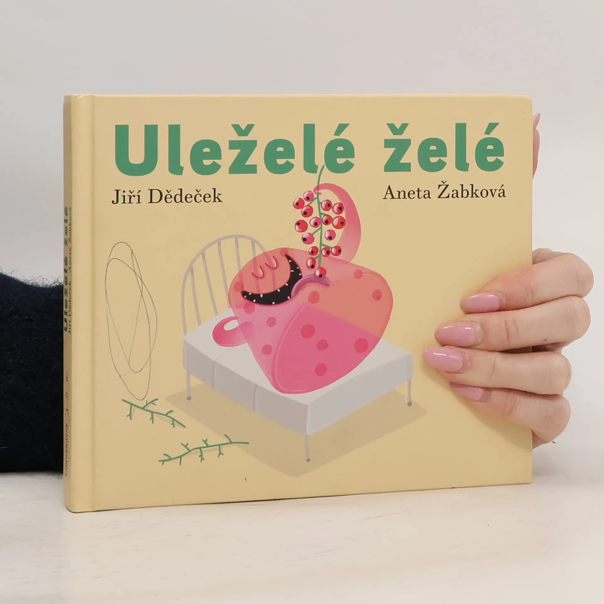 Autor Jiří Dědeček přichází s další hravou poetickou knížkou nazvanou zvukomalebně Uleželé želé. Malí čtenáři i jejich rodiče zde najdou praštěné básně zpracovávající nejrůznější životní situace, například školní oběd: Polévku zelnou jedla jsem / se zbraní střelnou za pasem/ kdyby mě byla polila / na místě bych ji skolila. Jedno oko nezůstane suché. Kongeniálními ilustracemi knihu i tentokrát vyzdobila Aneta Žabková.