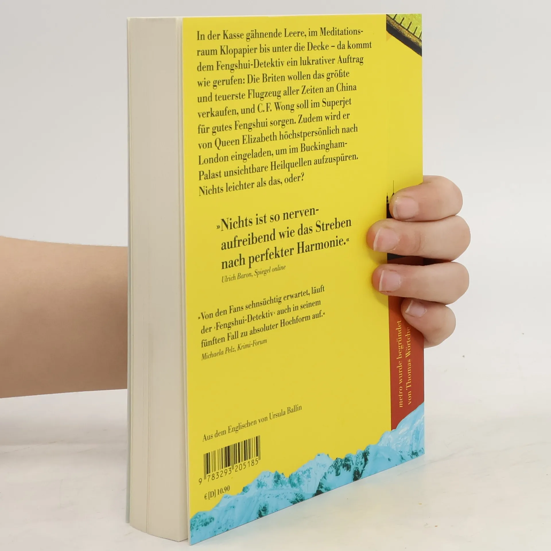 In der Kasse gähnende Leere, im Meditationsraum Klopapier bis unter die Decke … Da kommt dem Fengshui-Detektiv ein lukrativer Auftrag wie gerufen: Die Briten wollen das größte und teuerste Flugzeug aller Zeiten an China verkaufen, und C. F. Wong soll im Superjet für gutes Fengshui sorgen. Als an Bord der Maschine ein Mord geschieht, sieht der Fengshui-Detektiv sein Honorar explodieren – bei all der freigesetzten negativen Energie. Zudem wird er von Queen Elizabeth höchstpersönlich nach London eingeladen, um im Buckingham-Palast unsichtbare Unheilquellen aufzuspüren. Nichts leichter als das. Doch auf dem Weg dorthin im Luxusflieger muss C. F. Wong zunächst den Mordfall aufklären, sich selbst in Sicherheit und die brennende Maschine wieder heil auf den Boden bringen. Erst dann kommt es zum Shakehands mit der Queen »Mrs Winzer«.