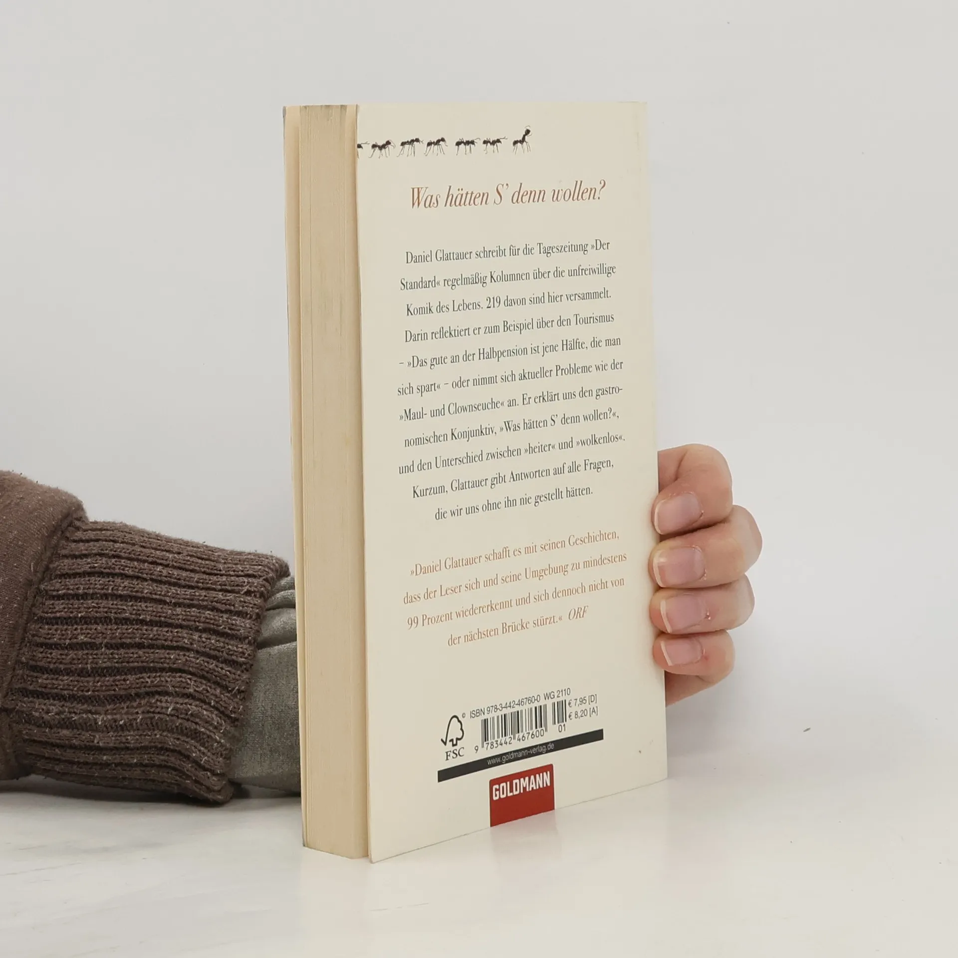 Ansichten und Einsichten von Daniel Glattauer Daniel Glattauer schreibt für die Tageszeitung „Der Standard“ regelmäßig Kolumnen über die unfreiwillige Komik des Lebens, 219 davon sind hier zusammengetragen. Darin reflektiert er z. B. über den Tourismus – „Das gute an der Halbpension ist jene Hälfte, die man sich spart“ – oder nimmt sich aktueller Probleme wie der „Maul- und Clownseuche“ an. Er erklärt uns den gastronomischen Konjunktiv, „Was hätten S’ denn wollen?“, und den Unterschied zwischen „heiter“ und „wolkenlos“. Kurzum, Glattauer gibt Antworten auf alle Fragen, die wir uns ohnehin nie gestellt hätten.