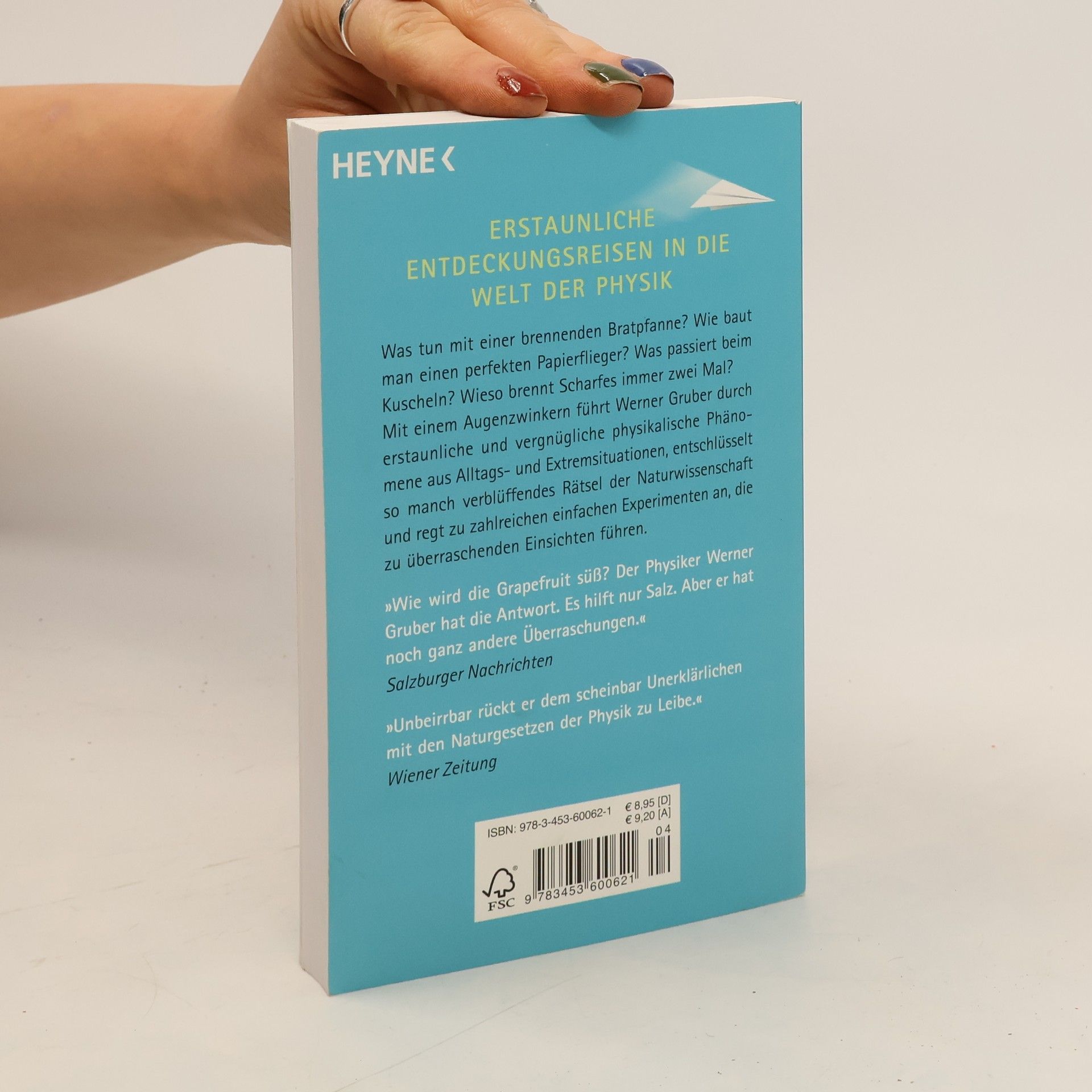 Erstaunliche Entdeckungsreisen in die Welt der Physik Was tun mit einer brennenden Bratpfanne? Wie baut man einen perfekten Papierflieger? Und wieso brennt Scharfes immer zwei Mal? Mit einem Augenzwinkern führt Werner Gruber durch erstaunliche und vergnügliche physikalische Phänomene aus Alltags- und Extremsituationen, entschlüsselt so manch verblüffendes Rätsel der Naturwissenschaft und regt zu zahlreichen einfachen Experimenten an, die zu überraschenden Einsichten führen.