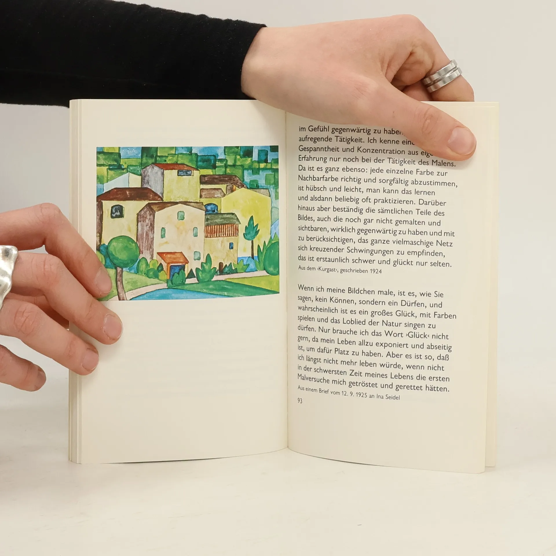 Im Alter von vierzig Jahren, mitten im Ersten Weltkrieg, hat Hermann Hesse zu malen begonnen. Es war ihm ein »Ausweg, um auch in bittersten Zeiten das Leben ertragen zu können« und um Distanz von der Literatur zu gewinnen. »Ich habe mein Malstühlchen in der Hand«, schreibt er 1920, »das ist mein Zauberapparat und Faustmantel, mit dessen Hilfe ich schon tausendmal Magie getrieben und den Kampf mit der blöden Wirklichkeit gewonnen habe.«