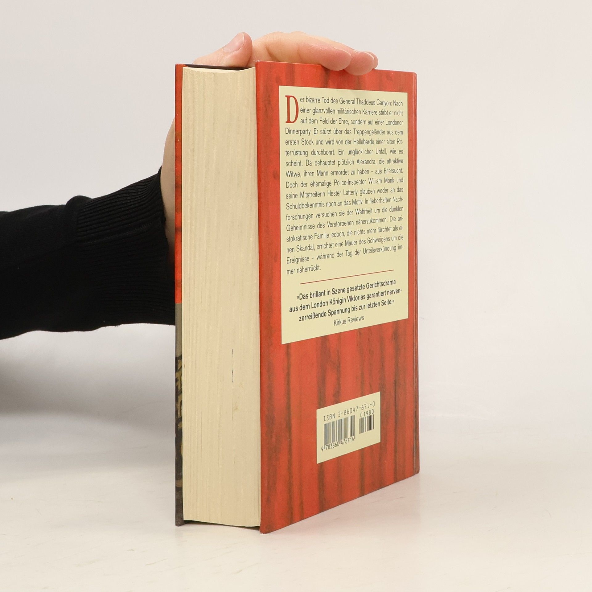 Bei einer Dinnerparty stürzt der adlige General Thaddeus Carlyon über ein Treppengeländer und stirbt. Allem Anschein nach handelt es sich um einen tragischen Unfall. Doch plötzlich behauptet die attraktive Witwe des Toten, ihren Mann ermordet zu haben – aus Eifersucht. Inspector William Monk glaubt weder an das merkwürdige Schuldbekenntnis noch an das Motiv. Doch er hat nur wenig Zeit, um die Wahrheit ans Licht zu bringen, denn die Urteilsverkündung rückt unaufhaltsam näher …