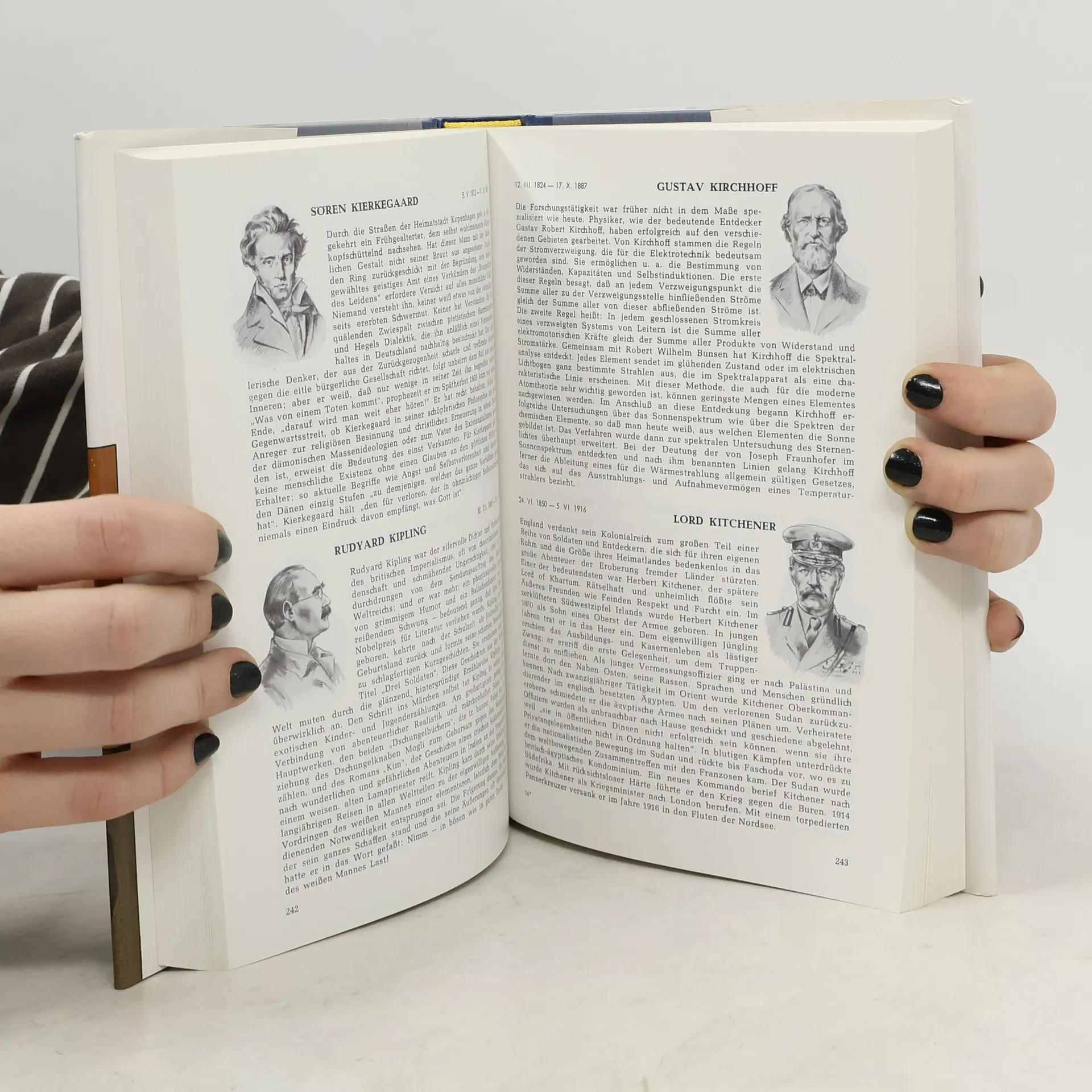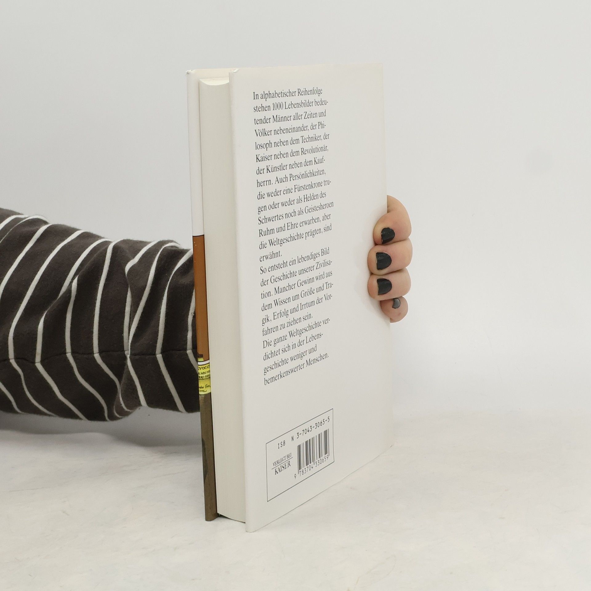 In alphabetischer Reihenfolge stehen tausend Lebensbilder bedeutender Männer aller Zeiten und Völker nebeneinander, der Philosoph neben dem Techniker, der Kaiser neben dem Recolutionär, der Künstler neben dem Kaufmann. Auch Persönlichkeiten die weder eine Fürstenkrone trugen oder weder als Helden des Schwertes noch als Geistesheroen Ruhm und Ehre erwarben, aber die Weltgeschichte prägten, sind erwähnt.§So entsteht ein lebendiges Bild der Geschichte der Zivilisation. Mancher Gewinn wird aus dem Wissen um Größe und Tragik, Erfolg und Irrtum der Vorfahren zu ziehen sein.§Die ganze Weltgeschichte verdichtet sich in der Lebensgeschichte weniger und bemerkenswerter Menschen.§