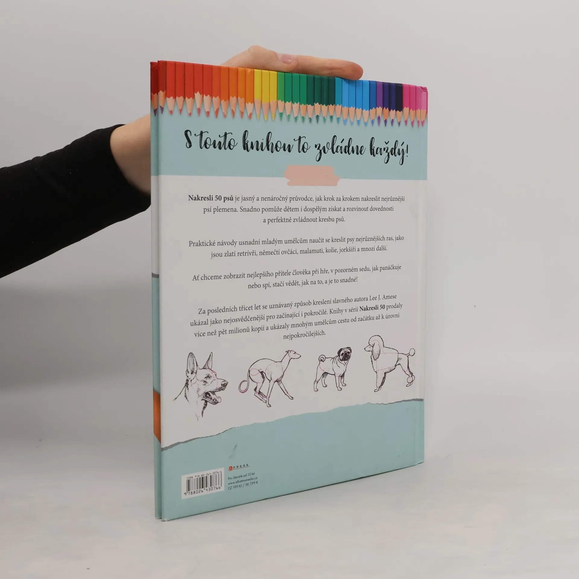 Nakresli 50 psů je jasný a nenáročný průvodce, jak krok za krokem nakreslit nejrůznější psí plemena. Snadno pomůže dětem i dospělým získat a rozvinout dovednosti a perfektně zvládnout kresbu psů. Praktické návody usnadní mladým umělcům naučit se kreslit psy nejrůznějších ras, jako jsou zlatí retrívři, němečtí ovčáci, malamuti, kolie, jorkšíři a mnozí další. Ať chceme zobrazit nejlepšího přítele člověka při hře, v pozorném sedu, jak panáčkuje nebo spí, stačí vědět, jak na to, a je to snadné!