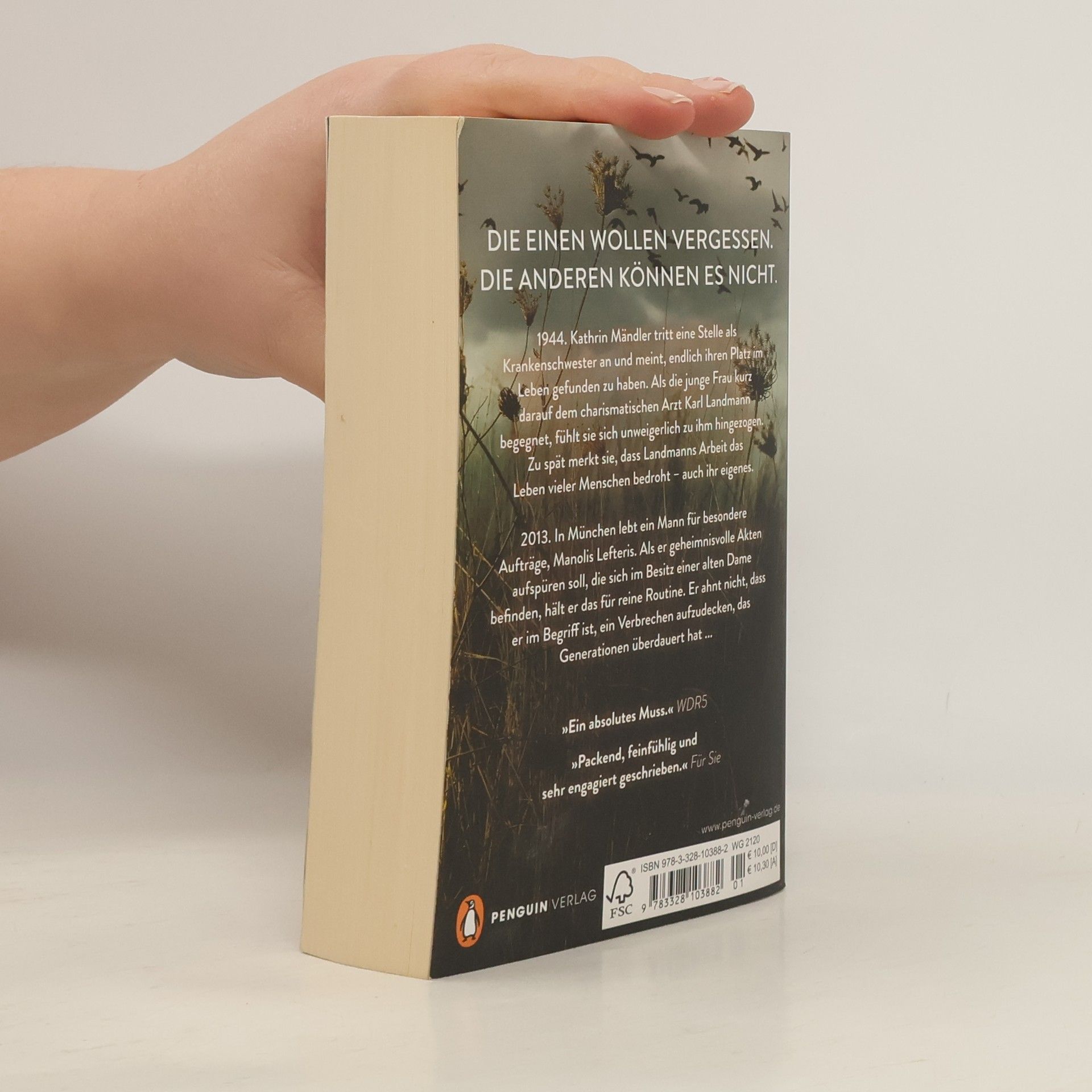 Die einen wollen vergessen. Die anderen können es nicht. 1944. Kathrin Mändler tritt eine Stelle als Krankenschwester an und meint, endlich ihren Platz im Leben gefunden zu haben. Als die junge Frau kurz darauf dem charismatischen Arzt Karl Landmann begegnet, fühlt sie sich unweigerlich zu ihm hingezogen. Zu spät merkt sie, dass Landmanns Arbeit das Leben vieler Menschen bedroht – auch ihr eigenes. 2013. In München lebt ein Mann für besondere Aufträge, Manolis Lefteris. Als er geheimnisvolle Akten aufspüren soll, die sich im Besitz einer alten Dame befinden, hält er das für reine Routine. Er ahnt nicht, dass er im Begriff ist, ein Verbrechen aufzudecken, das Generationen überdauert hat ...