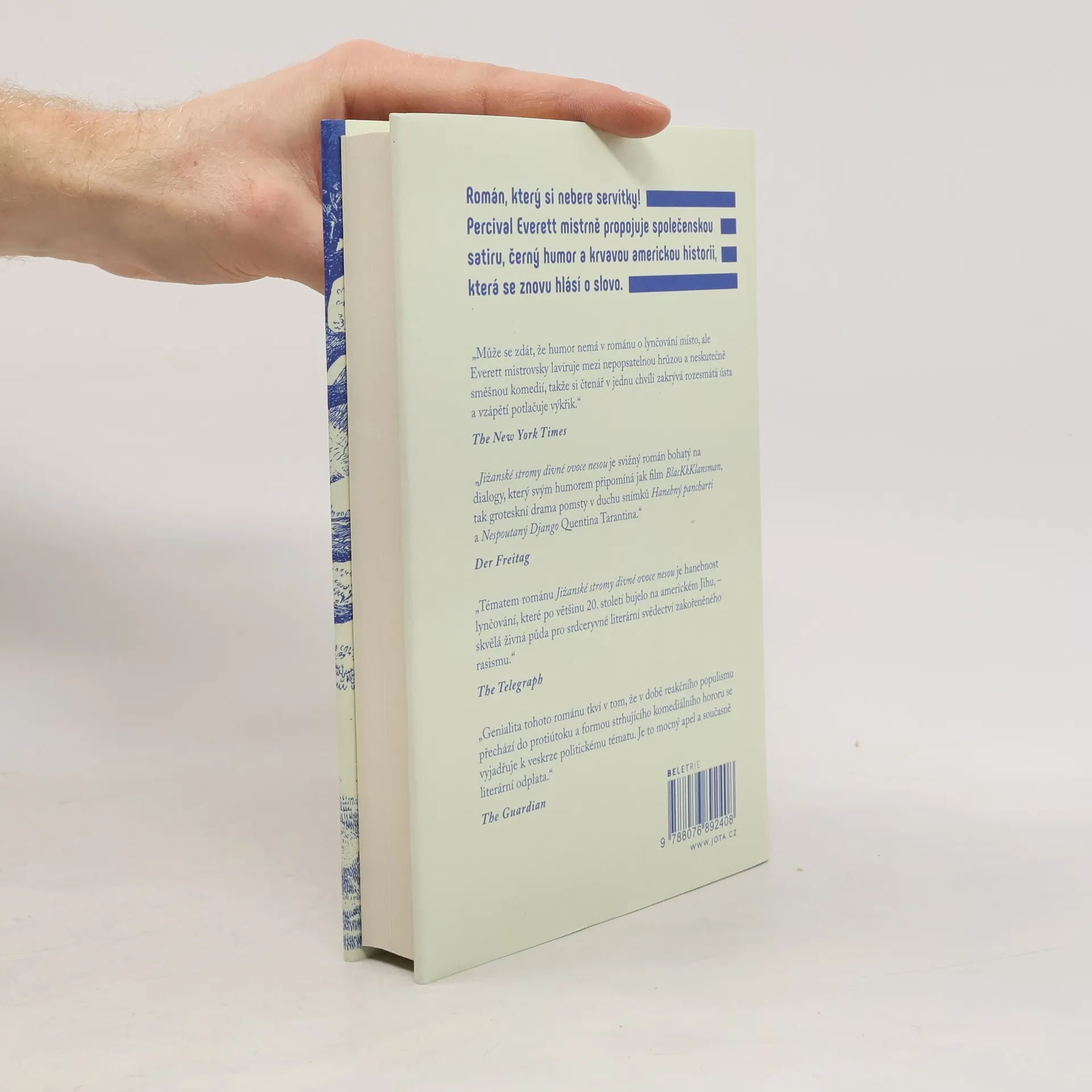 Román, který si nebere servítky! Percival Everett mistrně propojuje společenskou satiru, černý humor a krvavou americkou historii, která se znovu hlásí o slovo.Je cosi shnilého ve státě Mississippi – a nejen tam. Záhadné vraždy bělochů přitahují pozornost k tuctovému městečku Prachy. A dva detektivy, kteří je přijeli vyšetřovat, tu nevítají zrovna s otevřenou náručí. Na pozadí vyšetřování postupně vyvstává děsivý obraz rasového násilí, které se jako krev rozlévá po všech státech bývalého Jihu už desítky let. Sérii brutálních vražd spojuje přítomnost dalšího mrtvého těla – muže, který se velmi podobá Emmettu Tillovi, mladému černošskému chlapci, zlynčovanému ve stejném městě před 65 lety. Vypadá to, že oběti lynčů se po letech domáhají odepřené spravedlnosti samy, tedy jen s malou pomocí místní vědmy a jejích stoupenců, a dávají padouchům ochutnat jejich vlastní medicínu.Román Jižanské stromy divné ovoce nesou z pera amerického autora Percivala Everetta zpracovává téma černého svědomí Spojených států, a to s velkou dávkou černého humoru, okořeněného kapkou černé magie. Nestandardním způsobem předestírá palčivé a dosud neuzavřené otázky, které stále jitří americkou společnost.