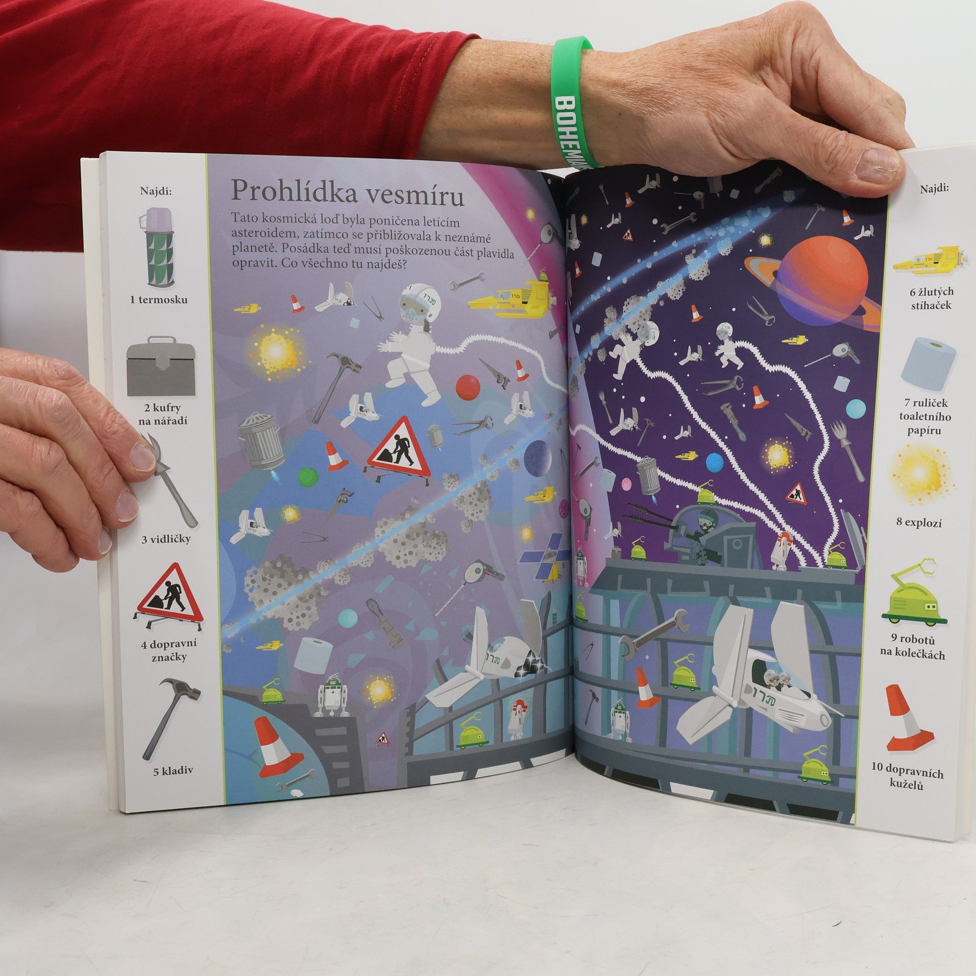 Přes 1000 různých předmětů schovaných v obrázcích! Cože, planeta dinosaurů? Ve vesmíru, jaký najdeš v tomto sešitu, je možné naprosto všechno. Objevíš na obrázku měsíc, planety, vesmírné draky i modré stíhačky? Radši si pospěš s hledáním, protože mimozemšťani už spustili útok a v řídicím středisku jsou zapotřebí všichni s bystrým zrakem, kteří by vetřelce dokázali ve vesmírném prostoru odhalit. V tomto sešitu tě čeká mnoho scenérií a situací s tematikou nejrůznějších vesmírných těles a tvorů. Stránky skýtají spoustu času zábavného hledání. Schválně, jak bystré máš smysly? Najdeš všechny předměty schované v obrázcích? Kdo a co všechno se schovává v těchto naprosto neuvěřitelných vesmírných scenériích? Objevuj rozmanité výjevy a zabav se hledáním více než tisícovky věcí, které jsou v knize šikovně ukryty. Kolik z nich se ti podaří najít?