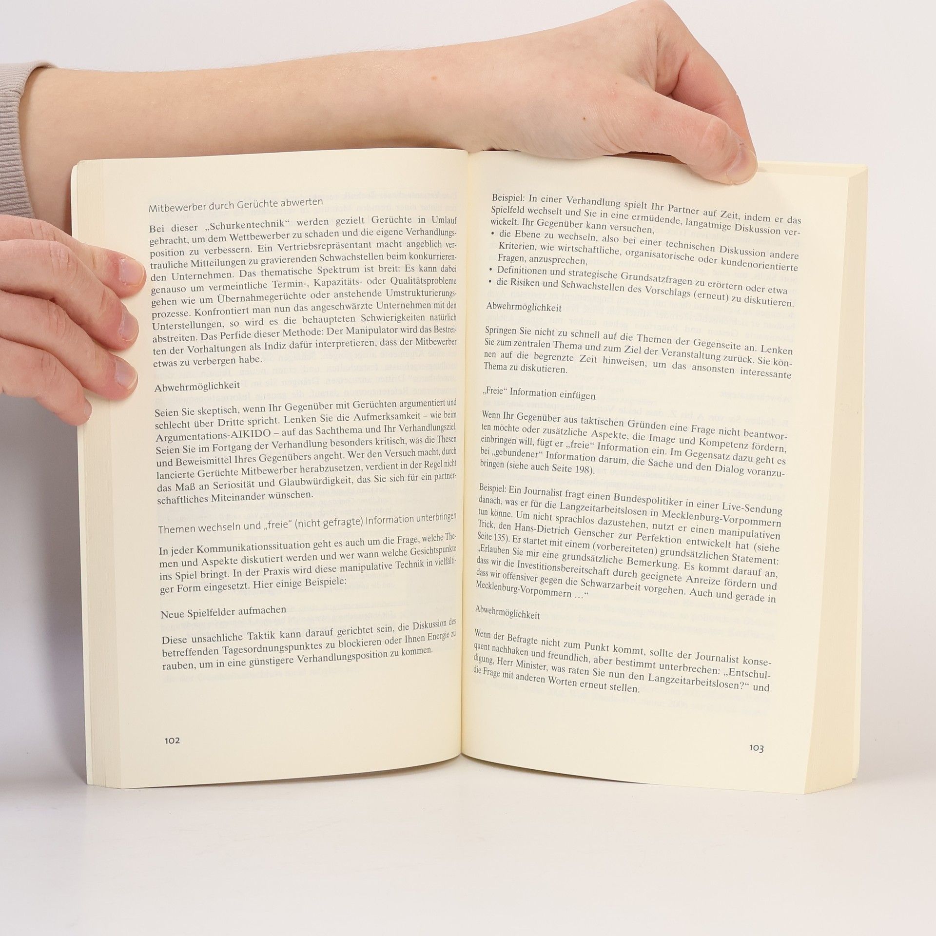 Gekonnt kontern! Offene oder verdeckte Angriffe, haltlose Behauptungen, emotional aufgeladene Debatten, Sticheleien, Polemik: Gerade in wirtschaftlich angespannten Zeiten haben aggressive und unsachliche Argumentationstechniken Konjunktur. Albert Thiele zeigt, wie man sich dagegen wehren kann, ohne in die gleichen Verhaltensmuster zu verfallen. Darüber hinaus sensibilisiert er für subtile und verdeckte Machtspiele, einschließlich so genannter »Dirty Tricks«, die der Einschüchterung dienen. Im Zentrum steht die Frage, wie man unsachliche Spielarten früh erkennt, geschickt abwehrt und das Heft des Handelns auf die eigene Seite bekommt. Schließlich schaffen professionelle Dialektik, Schlagfertigkeit und Stressresistenz günstige Voraussetzungen, um eigene Interessen und Karriereziele zu verwirklichen.Mit umfangreichem Übungsteil zu Reaktionsmöglichkeiten und den besten Abwehrstrategien in Stresssituationen.