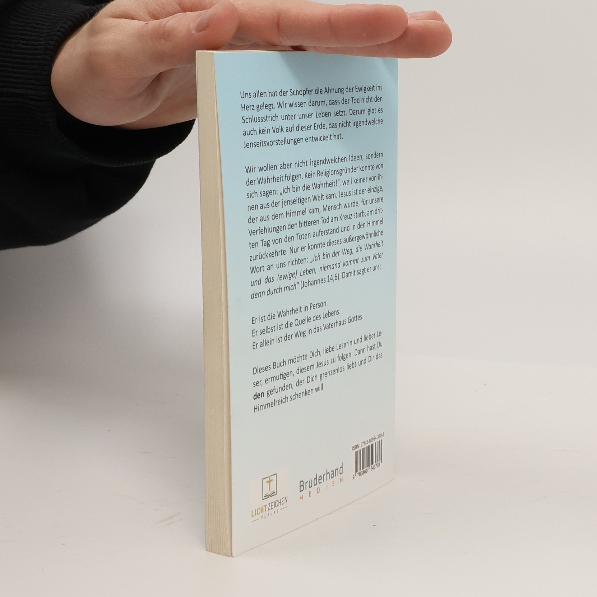 Uns allen hat der Schöpfer die Ahnung der Ewigkeit ins Herz gelegt. Wir wissen darum, dass der Tod nicht den Schlussstrich unter unser Leben setzt. Darum gibt es auch kein Volk auf dieser Erde, das nicht irgendwelche Jenseitsvorstellungen entwickelt hat. Wir wollen aber nicht irgendwelchen Ideen, sondern der Wahrheit folgen. Kein Religionsgründer konnte von sich sagen: „Ich bin die Wahrheit!“, weil keiner von ihnen aus der jenseitigen Welt kam. Jesus ist der einzige, der aus dem Himmel kam, Mensch wurde, für unsere Verfehlungen den bitteren Tod am Kreuz starb, am dritten Tag von den Toten auferstand und in den Himmel zurückkehrte. Nur er konnte dieses außergewöhnliche Wort an uns richten: „Ich bin der Weg, die Wahrheit und das (ewige) Leben, niemand kommt zum Vater denn durch mich“ (Johannes 14,6). Damit sagt er uns: Er ist die Wahrheit in Person. Er selbst ist die Quelle des Lebens. Er allein ist der Weg in das Vaterhaus Gottes. Dieses Buch möchte Sie, liebe Leserin und lieber Leser, ermutigen, diesem Jesus zu folgen. Dann haben Sie den gefunden, der Sie grenzenlos liebt und Ihnen das Himmelreich schenken will.