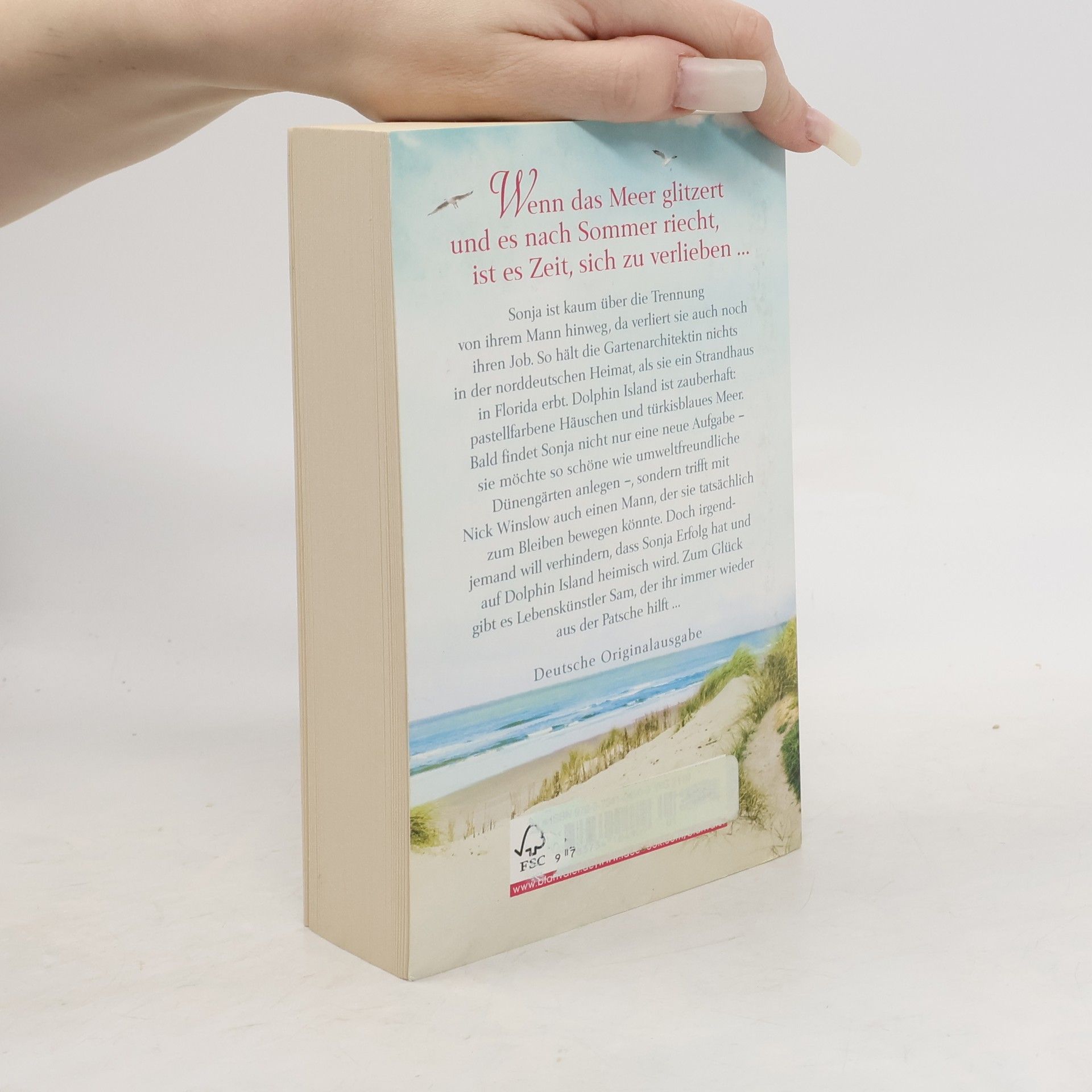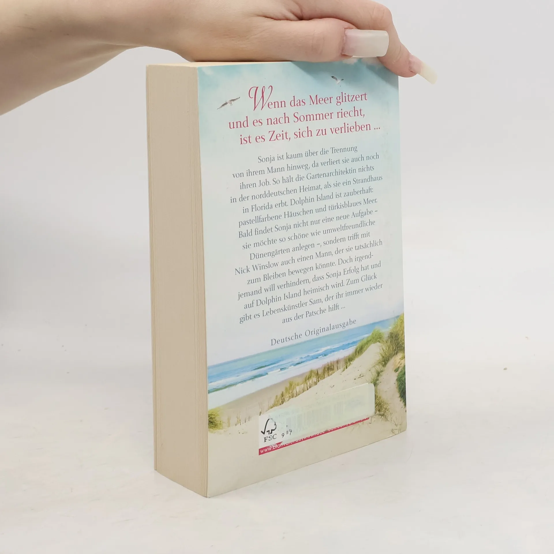 Wenn das Meer glitzert und es nach Sommer riecht, ist es Zeit, sich zu verlieben ... Sonja ist kaum über die Trennung von ihrem Mann hinweg, als sie auch noch ihren Job verliert. So hält die Gartenarchitektin nichts in der Heimat, als sie überraschend ein Strandhaus in Florida erbt. Dolphin Island ist zauberhaft: pastellfarbene Häuschen und türkisblaues Meer. Bald findet Sonja nicht nur eine neue Aufgabe – sie möchte so schöne wie umweltfreundliche Dünengärten anlegen –, sondern trifft mit Nick Winslow auch einen Mann, der sie tatsächlich zum Bleiben bewegen könnte. Doch irgendjemand will verhindern, dass Sonja Erfolg hat und auf Dolphin Island heimisch wird. Zum Glück gibt es Lebenskünstler Sam, der ihr immer wieder aus der Patsche hilft ...
