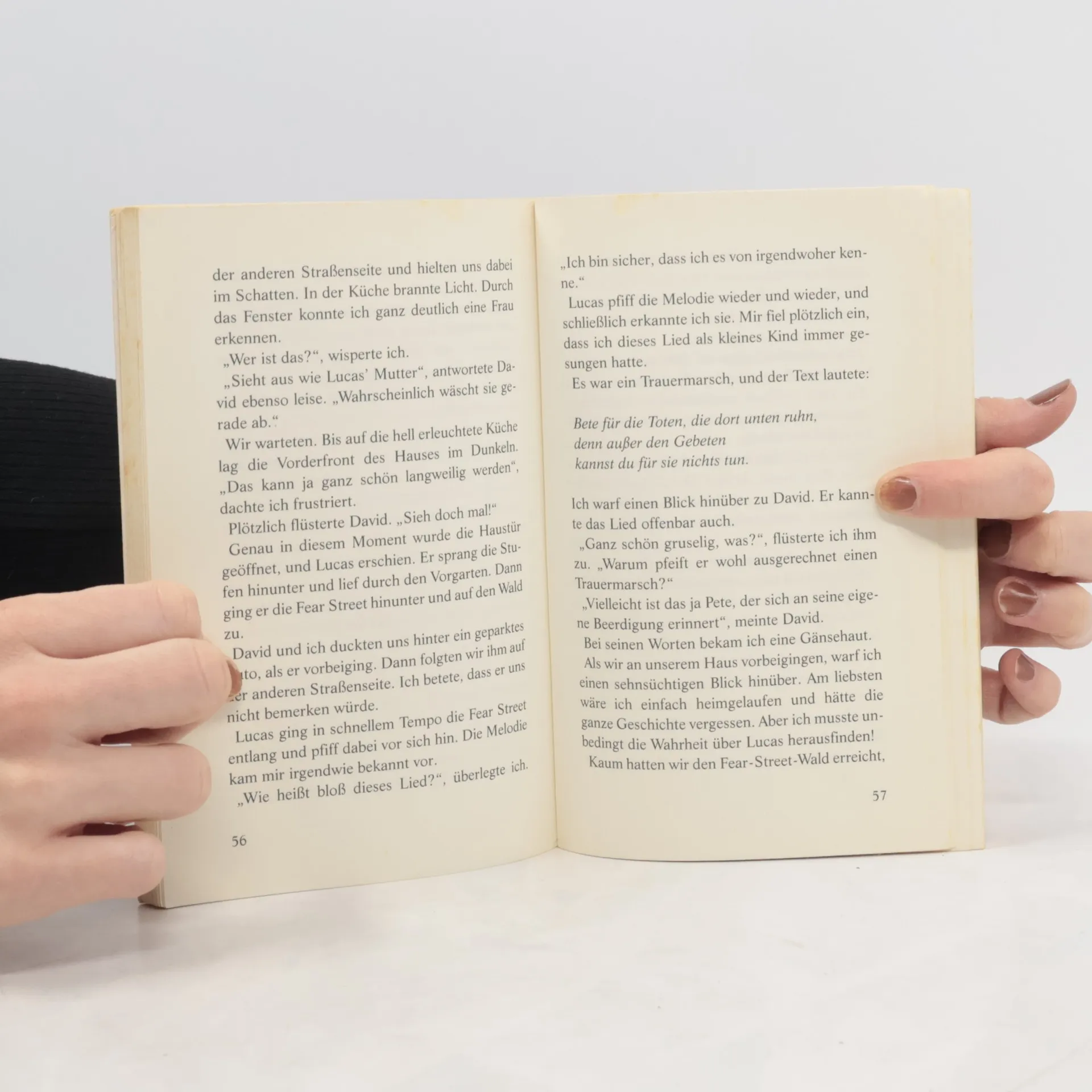 Randy rennt, so schnell sie kann. Denn Pete ist hinter ihr her. Pete, der Geisterjunge, mit dem alle Kinder aus Shadyside einmal im Jahr Verstecken spielen müssen. Wenn er sie fängt, hat er ein Jahr lang die Kontrolle über ihren Körper. Aber Randy will auf keinen Fall schleimige Würmer essen. Und schon gar nicht auf dem Friedhof wohnen ...