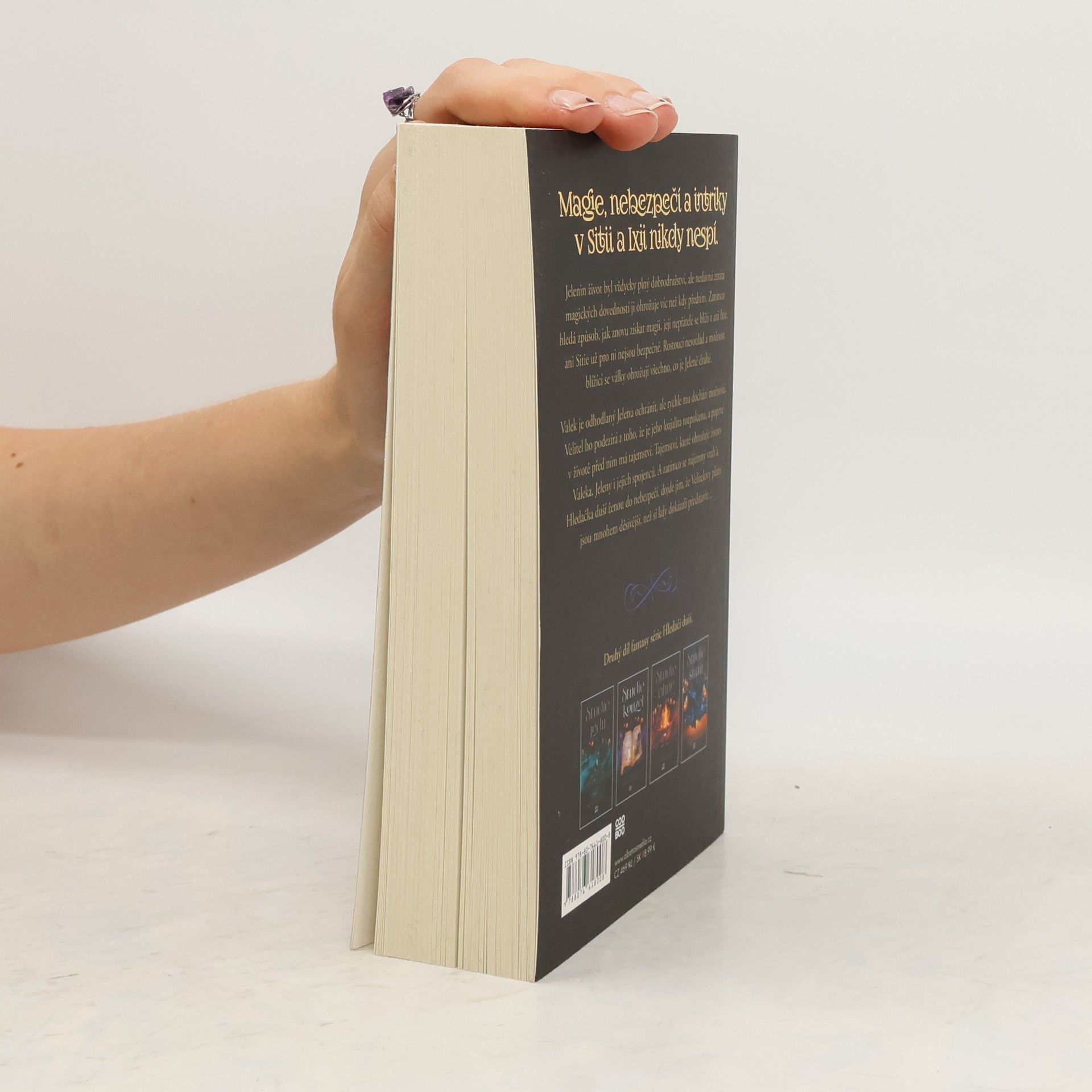 Jelenin život byl vždycky plný dobrodružství, ale nedávná ztráta jejích magických dovedností ji ohrožuje víc než kdy předtím. Zatímco zoufale hledá způsob, jak znovu získat svou magii, její nepřátelé se blíží a ani Ixie, ani Sitie už pro ni nejsou bezpečné. Rostoucí nesoulad mezi dvěma zeměmi a možnost blížící se války ohrožují všechno, co je Jeleně drahé.Valek je odhodlaný Jelenu ochránit, ale rychle mu dochází možnosti. Velitel ho podezírá z toho, že je jeho loajalita rozpolcena, a poprvé v životě před ním má tajemství. Tajemství, které ohrožuje životy Valeka, Jeleny i jejich spojenců. A zatímco se nájemný vrah a Hledačka duší ženou do nebezpečí, dojde jim, že Velitelovy plány jsou mnohem děsivější, než si kdy dokázali představit…