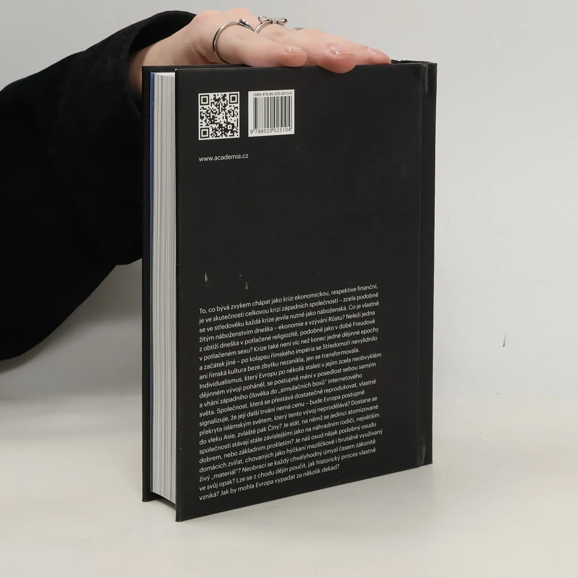 To, co bývá zvykem chápat jako krizi ekonomickou, respektive finanční, je ve skutečnosti celkovou krizí západních společností. Co je vlastně žitým náboženstvím dneška – ekonomie a vzývání Růstu? Neleží jedna z obtíží dneška v potlačené religiozitě? Krize není víc než konec jedné dějinné epochy a začátek jiné. Jak se projevuje současný individualismus a k čemu spěje? Je stát největším dobrem nebo základním prokletím? Je náš osud nějak podobný osudu domácích zvířat, chovaných jako hýčkaní mazlíčkové i brutálně využívaný živý „materiál“? Lze se z chodu dějin poučit, jak historický proces vlastně vzniká? Jak by mohla Evropa vypadat za několik dekád?