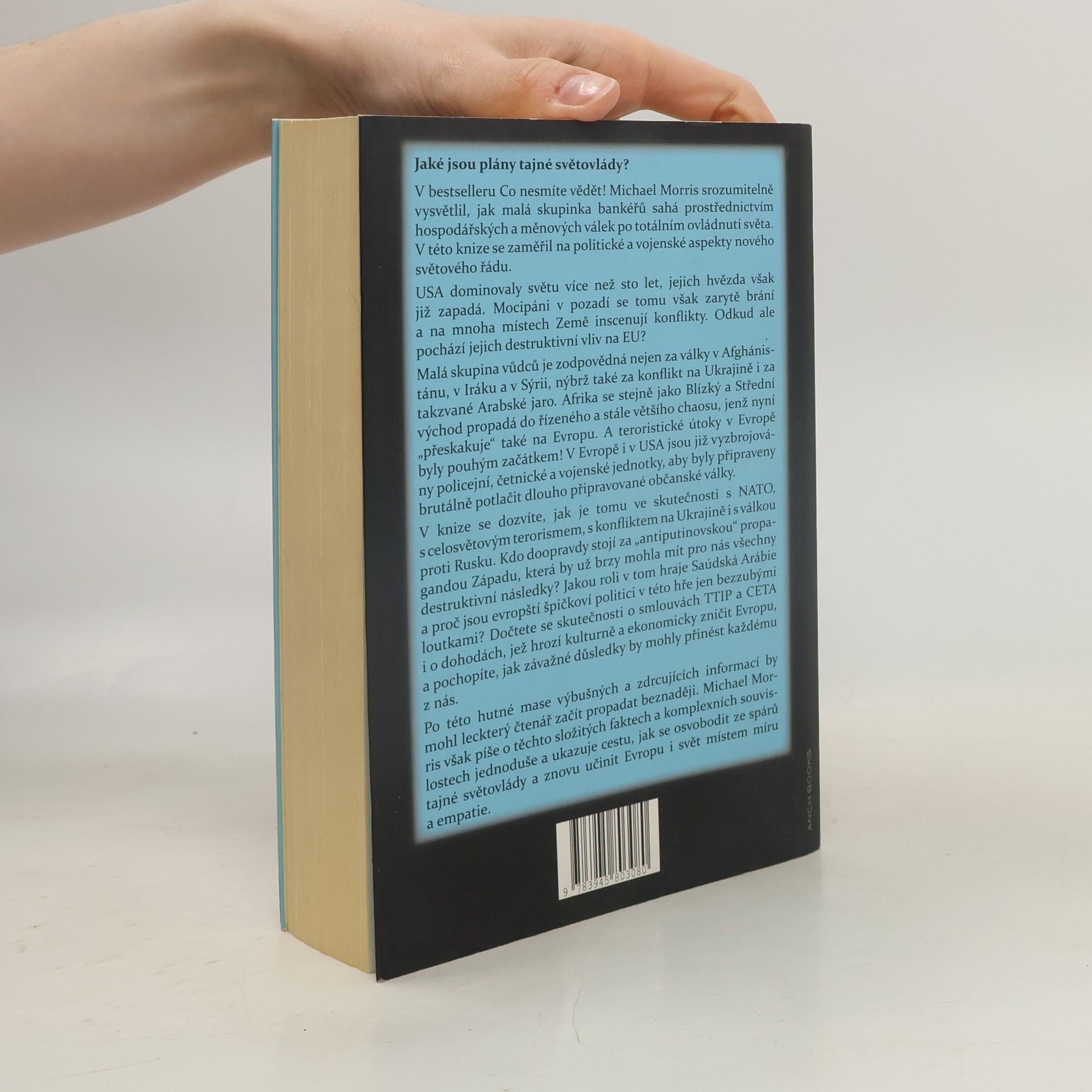 V bestselleru Co nesmíte vědět Michael Morris vysvětlil, jak malá skupina bankéřů usiluje o ovládnutí světa prostřednictvím hospodářských a měnových válek. V tomto druhém díle se zaměřuje na politické a vojenské aspekty nového světového řádu. USA, které dominovaly více než sto let, nyní ztrácejí moc, zatímco mocipáni v pozadí inscenují konflikty po celém světě, včetně EU. Tato malá skupina vůdců nese odpovědnost za války v Afghánistánu, Iráku a Sýrii, stejně jako za konflikt na Ukrajině a Arabské jaro. Afrika a Blízký východ se propadají do chaosu, který se šíří i do Evropy, přičemž teroristické útoky v Paříži byly jen začátkem. Policie a armáda v Evropě a USA se připravují na možné občanské války. Morris odhaluje skutečnosti o NATO, globálním terorismu a propagandě proti Rusku, včetně role Saúdské Arábie a bezmocnosti evropských politiků. Zmiňuje smlouvy TTIP a CETA, které mohou ohrozit kulturu a ekonomiku Evropy. Přestože informace mohou vyvolat beznaděj, autor je prezentuje srozumitelně a nabízí cestu k osvobození od tajné světovlády, aby se Evropa a svět staly místem míru a empatie.