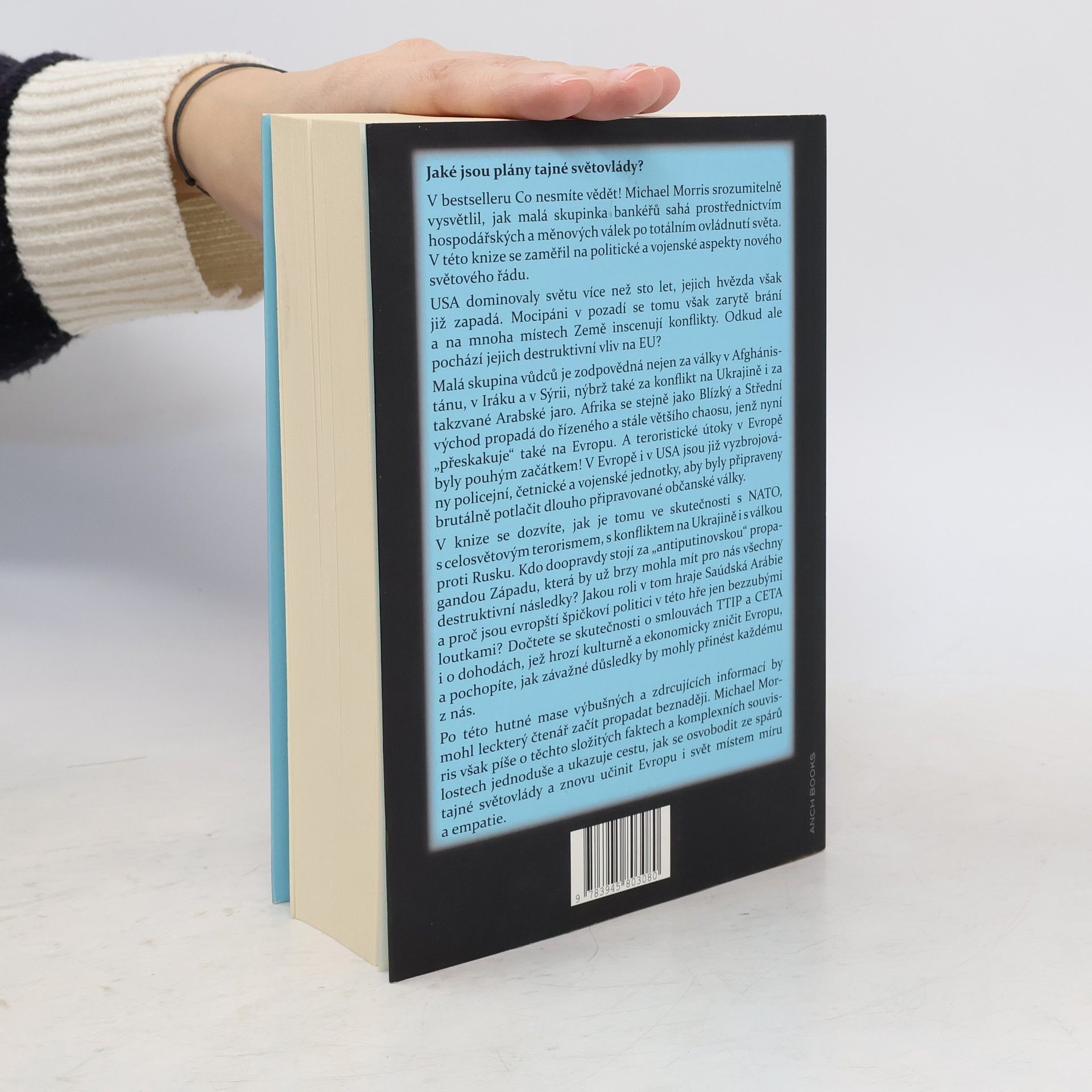V bestselleru Co nesmíte vědět Michael Morris vysvětlil, jak malá skupina bankéřů usiluje o ovládnutí světa prostřednictvím hospodářských a měnových válek. V tomto druhém díle se zaměřuje na politické a vojenské aspekty nového světového řádu. USA, které dominovaly více než sto let, nyní ztrácejí moc, zatímco mocipáni v pozadí inscenují konflikty po celém světě, včetně EU. Tato malá skupina vůdců nese odpovědnost za války v Afghánistánu, Iráku a Sýrii, stejně jako za konflikt na Ukrajině a Arabské jaro. Afrika a Blízký východ se propadají do chaosu, který se šíří i do Evropy, přičemž teroristické útoky v Paříži byly jen začátkem. Policie a armáda v Evropě a USA se připravují na možné občanské války. Morris odhaluje skutečnosti o NATO, globálním terorismu a propagandě proti Rusku, včetně role Saúdské Arábie a bezmocnosti evropských politiků. Zmiňuje smlouvy TTIP a CETA, které mohou ohrozit kulturu a ekonomiku Evropy. Přestože informace mohou vyvolat beznaděj, autor je prezentuje srozumitelně a nabízí cestu k osvobození od tajné světovlády, aby se Evropa a svět staly místem míru a empatie.