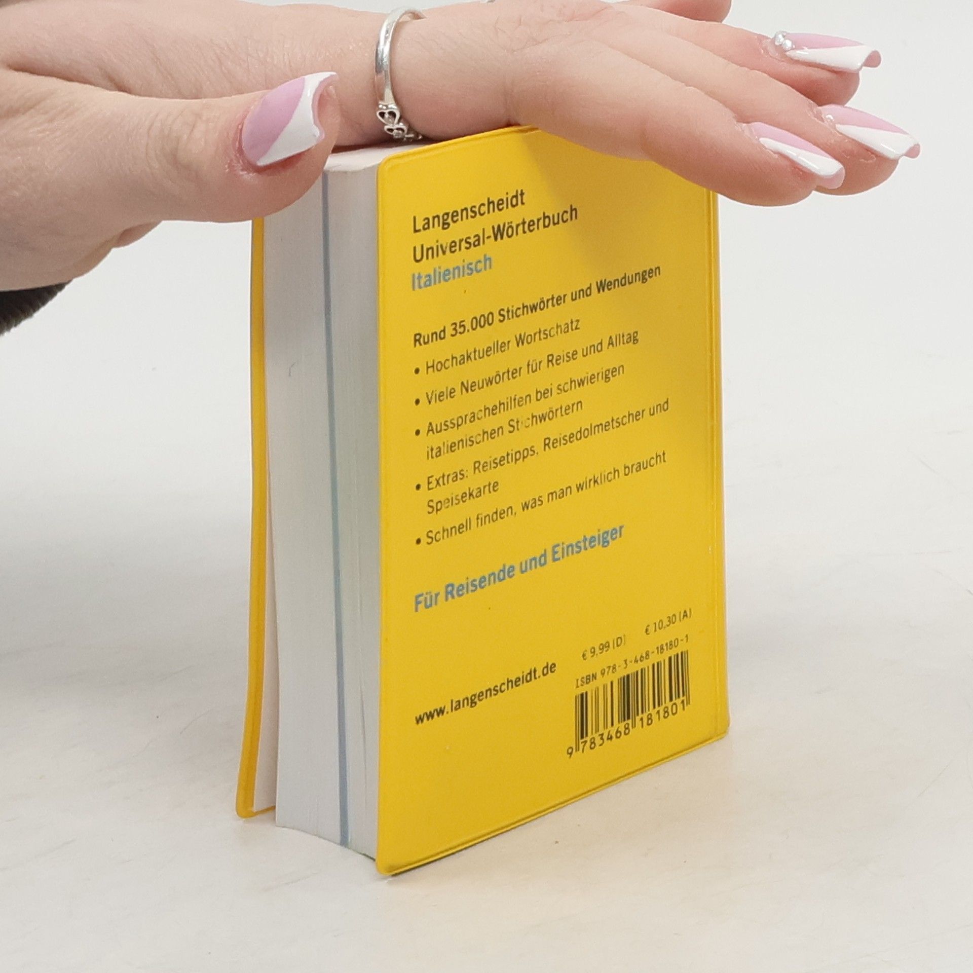 Mit dem kleinen, handlichen Universal-Wörterbuch Italienisch von Langenscheidt finden Sie schnell die Wörter und Wendungen, die Sie im Alltag und auf Reisen brauchen. Die Einführung enthält Aussprachehinweise zum Italienischen, die Ihnen die Kommunikation vor Ort erleichtern. Das Wörterbuch enthält zudem zahlreiche Extras, die bei einem Aufenthalt in Italien hilfreich sind. Rund 35.000 Stichwörter und Wendungen in Langenscheidt-Qualität Hochaktueller Wortschatz Mini-Dolmetscher zu den Themen Verständigung, Small Talk, Unterwegs, Shopping und Restaurant Italienische Speisekarte Reisetipps von A – Z Zielgruppe: Reisende und Einsteiger ins Italienische