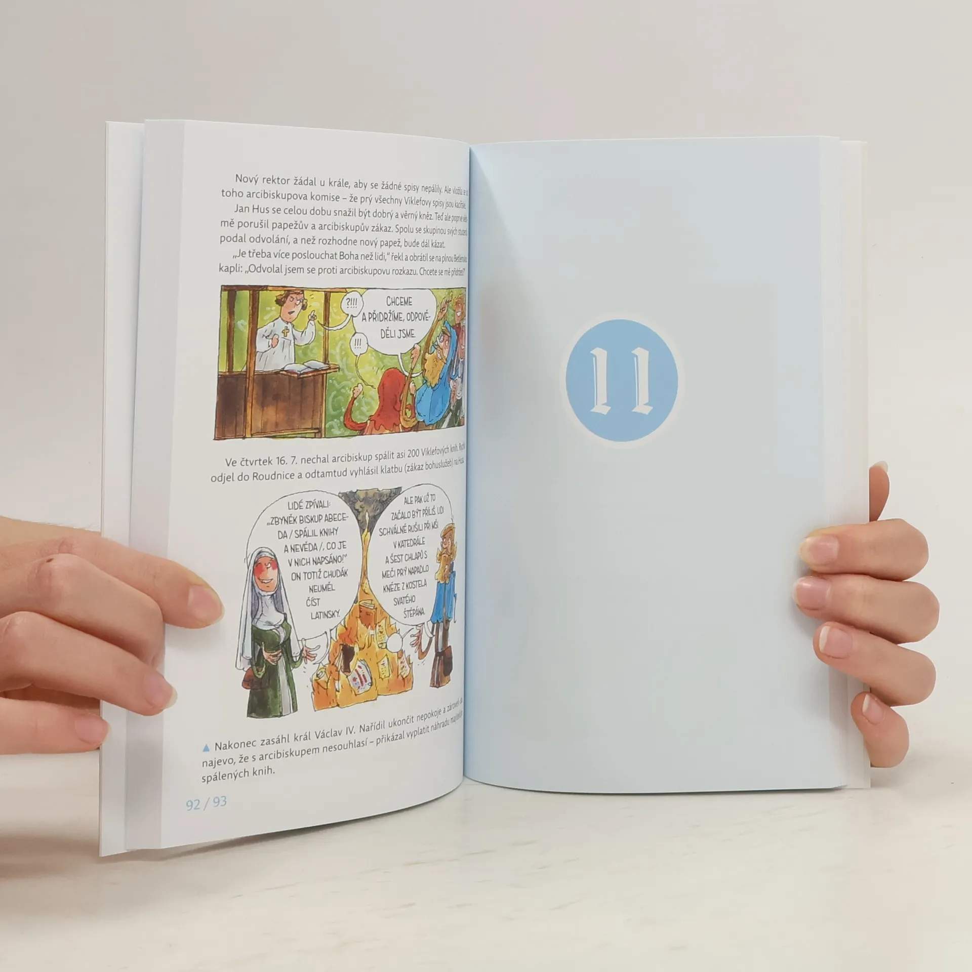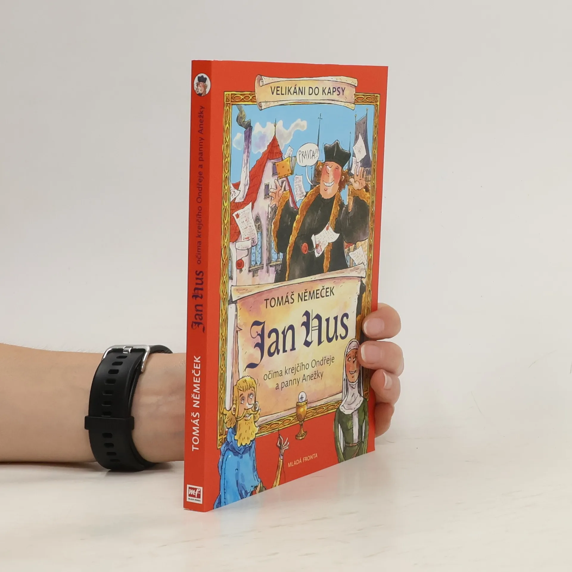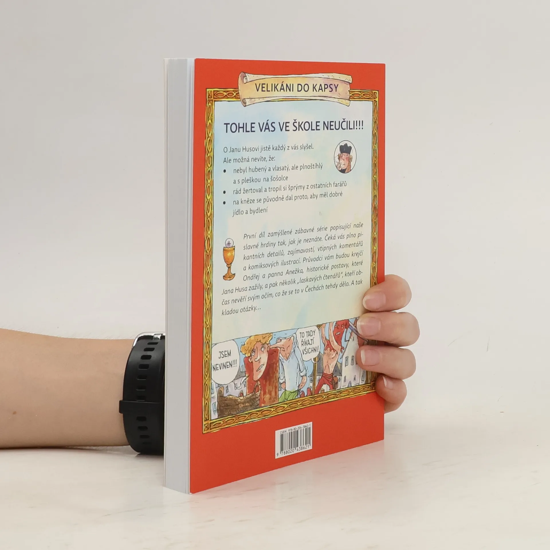 První díl zamýšlené zábavné série popisující naše slavné hrdiny tak, jak je neznáte. Čeká vás plno pikantních detailů, zajímavostí, vtipných komentářů a komiksových ilustrací. Průvodci vám budou krejčí Ondřej a panna Anežka, historické postavy, které Jana Husa zažily, a pak několik „laskavých čtenářů“, kteří občas nevěří svým očím, co že se to v Čechách tehdy dělo. A tak kladou otázky… O Janu Husovi jistě každý z vás slyšel. Ale možná nevíte, že: – nebyl hubený a vlasatý, ale plnoštíhlý a s pleškou na šošolce – rád žertoval a tropil si šprýmy z ostatních farářů – na kněze se původně dal proto, aby měl dobré jídlo a bydlení