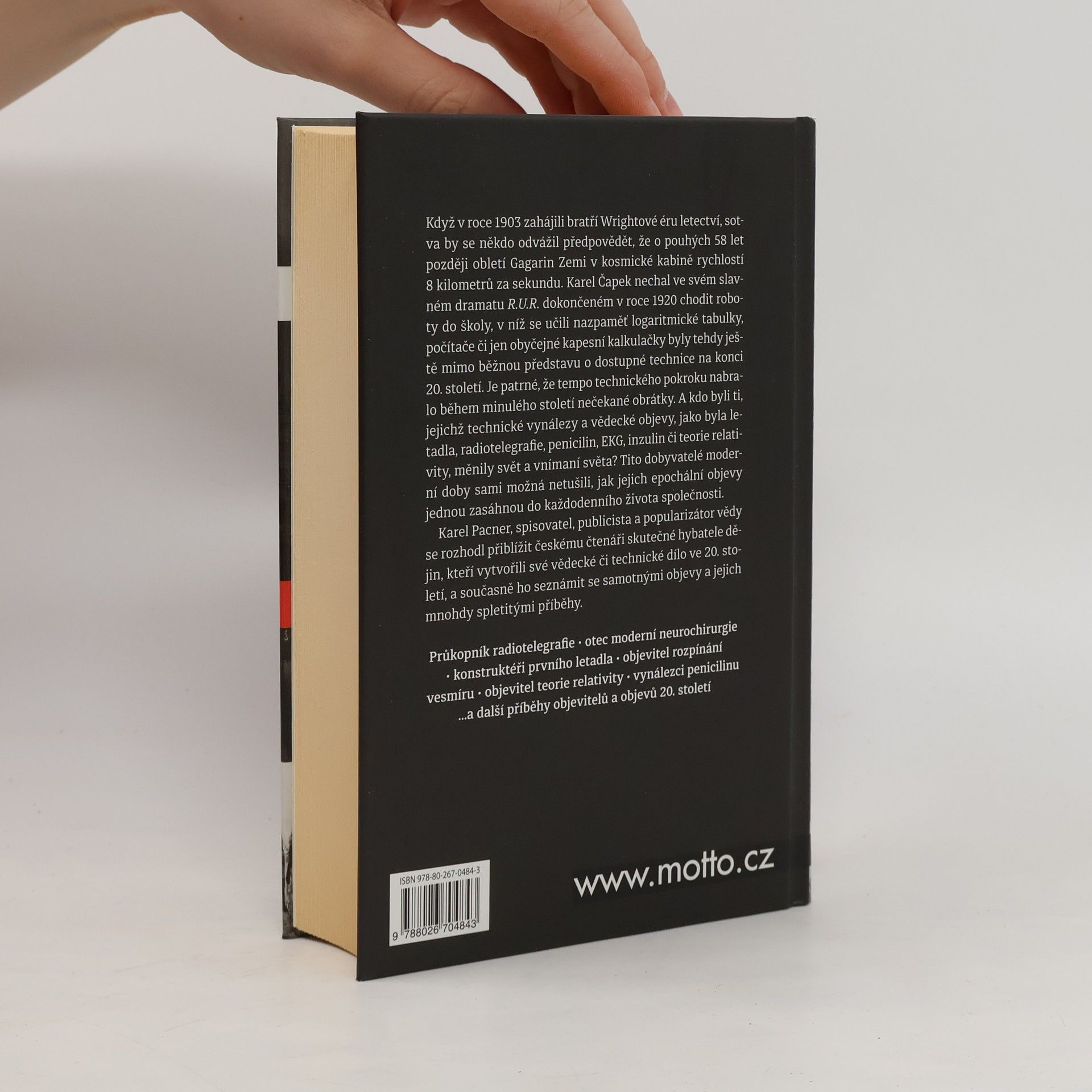 Když v roce 1903 zahájili bratří Wrightové éru letectví, sotva by se někdo odvážil předpovědět, že o pouhých 58 let později obletí Gagarin Zemi v kosmické kabině rychlostí 8 kilometrů za sekundu. Karel Čapek nechal ve svém slavném dramatu R.U.R. dokončeném v roce 1920 chodit roboty do školy, v níž se učili nazpaměť logaritmické tabulky, počítače či jen obyčejné kapesní kalkulačky byly tehdy ještě mimo běžnou představu o dostupné technice na konci 20. století. Je patrné, že tempo technického pokroku nabralo během minulého století nečekané obrátky. A kdo byli ti, jejichž technické vynálezy a vědecké objevy jako byla letadla, radiotelegrafie, penicilin, EKG, inzulin či teorie relativity, měnily svět a vnímaní světa? Ti to dobyvatelé moderní doby sami možná netušili, jak jejich epochální objevy jednou zasáhnou do každodenního života společnosti Karel Pacner, spisovatel, publicista a popularizátor vědy se rozhodl přiblížit českému čtenáři skutečné hybatele dějin, kteří vytvořili své vědecké či technické dílo ve 20. století, a současně ho seznámit se samotnými objevy a jejich mnohdy spletitými příběhy.