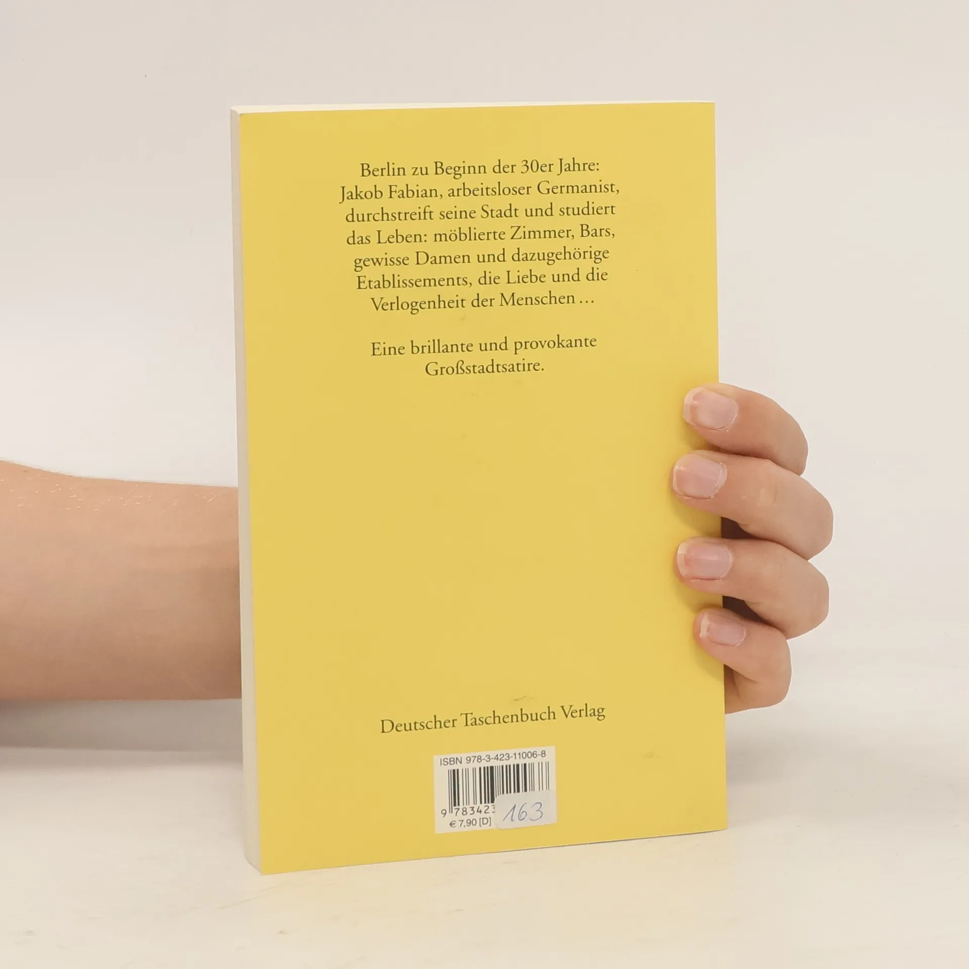 Bissig und schonungslosEine brillante und provokante Großstadtsatire im Berlin der frühen 30er Jahre. »Satirischer Roman von Erich Kästner, erschienen 1931. - Das Werk gilt als eine der brillantesten Satiren auf deutsche, insbesondere Berliner Zustände am Ende der zwanziger Jahre und während der großen Wirtschaftskrise um 1930. Titelheld ist der zweiunddreißigjährige Germanist Dr. Jakob Fabian, bisher Adressenschreiber, nun Reklametexter für eine Zigarettenfirma, ein »zarter Ironiker«, der »auf den Sieg der Anständigkeit wartet«, nicht gerade lebenstüchtig ist und von den Menschen immer wieder übervorteilt wird.«