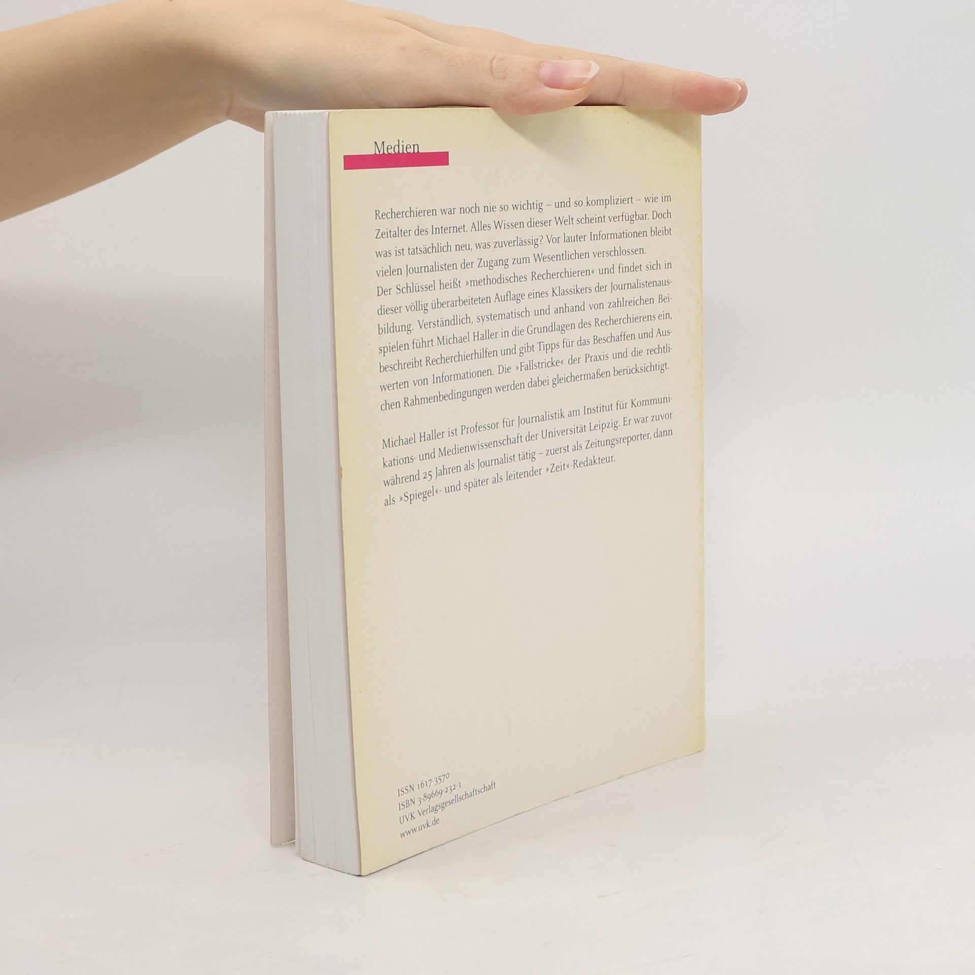 Recherchieren war noch nie so wichtig - und so kompliziert - wie im Zeitalter des Internet. Alles Wissen dieser Welt scheint verfügbar. Doch was ist tatsächlich neu, was zuverlässig? Vor lauter Informationen bleibt vielen Journalisten der Zugang zum Wesentlichen verschlossen. Der Schlüssel heißt „methodisches Recherchieren“ und findet sich in dieser völlig überarbeiteten Auflage eines Klassikers der Journalistenausbildung. Verständlich, systematisch und anhand von zahlreichen Beispielen führt Michael Haller in die Grundlagen des Recherchierens ein, beschreibt Recherchierhilfen und gibt Tipps für das Beschaffen und Auswerten von Informationen. Die „Fallstricke“ der Praxis und die rechtlichen Rahmenbedingungen werden dabei gleichermaßen berücksichtigt.