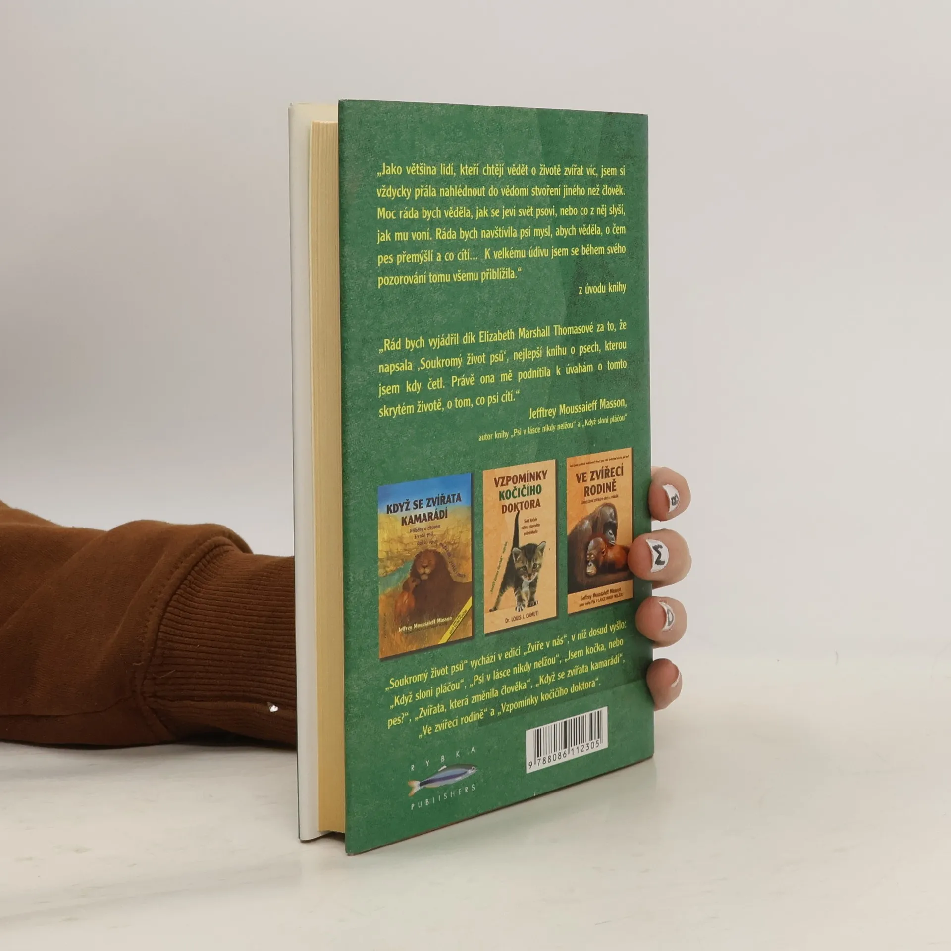 Další z řady knih o emocionálním životě zvířat je nádherným svědectvím o třiceti letech života strávených se psy, vlky a dingy a o propojenosti jejich životů s životem autorky. Citlivá, osobní a přesto nesentimentální kronika života psů, založená na stovkách a tisících hodin trpělivého pozorování. Autorka se pokusila zachytit život smečky jedenácti psů, šesti fen a pěti psů. Psi sami byli jejími průvodci, kteří jí dovolili pochopit své emoce, touhy, hierarchii a někdy i své sny. Co psi skutečně chtějí? Jak se chovají, když je ponecháme sobě samým? Co prožívají? Jen málo autorů dokázalo porozumět a popsat psí duši tak poutavě jako E. Marshall Thomasová.