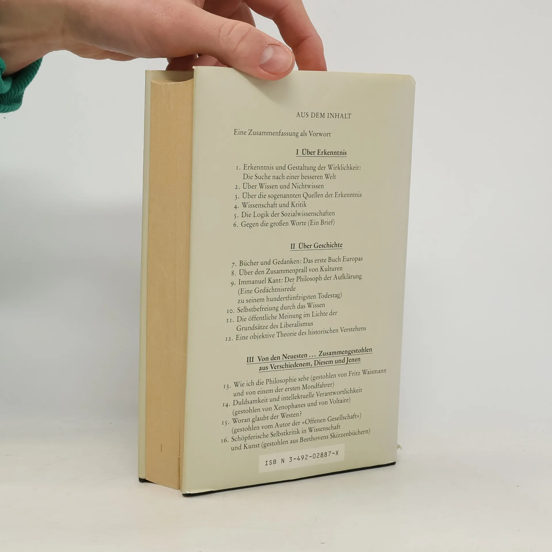 Karl Raimund Popper zählt zu den bedeutendsten Philosophen dieses Jahrhunderts. Sein »kritischer Rationalismus« und seine Konzeption der »offenen Gesellschaft« haben nachhaltigen Einfluß auf die Philosophie, die Wirtschafts- und Sozialwissenschaften und auf die Politik der westlichen Welt ausgeübt – sie tun dies bis heute. Seine Theorie von den »Drei Welten« hat der Diskussion um das »Leib-Seele-Problem« – vor allem um die Wechselwirkung zwischen physischen Vorgängen und psychischen Prozessen – neue entscheidende Impulse gegeben. Der vorliegende Band – vom Autor selbst gestaltet – versammelt zentrale Vorträge und Aufsätze Poppers aus dreißig Jahren. Die Texte faszinieren durch ihre lebendige und klare Sprache. Sie konfrontieren den Leser mit Poppers großen Themen und mit der Vielfalt seines Denkens.