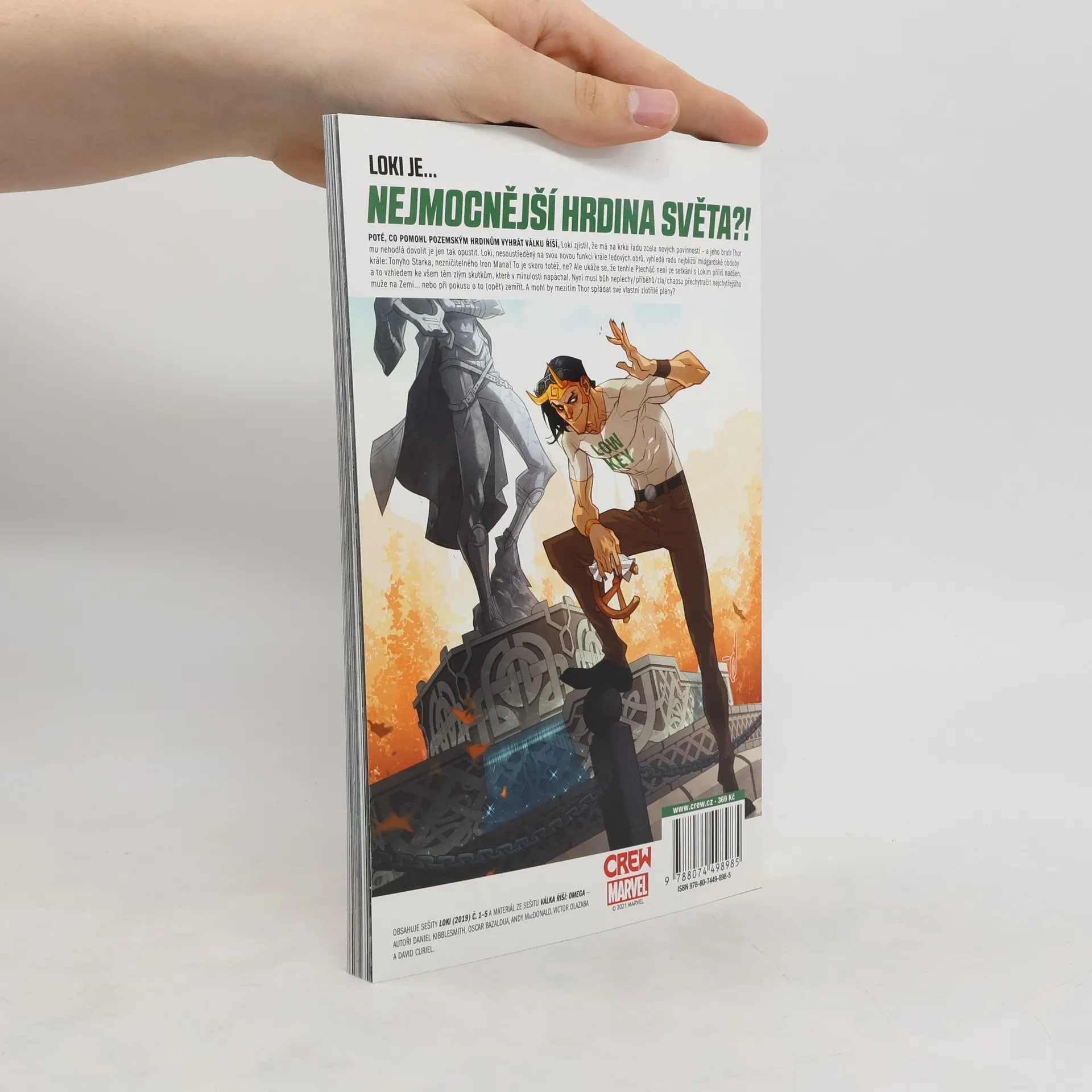 LOKI JE... NEJMOCNĚJŠÍ HRDINA SVĚTA?! Poté, co pomohl pozemským hrdinům vyhrát Válku říší, Loki zjistil, že mu vznikla úplně nová řada povinností – a jeho bratr Thor mu nehodlá dovolit je opustit. Loki, nesoustředěný na své nové povinnosti krále ledových obrů, vyhledá radu nejbližší midgardské obdoby krále: Tonyho Starka, nezničitelného Iron Mana! To je skoro totéž, ne? Ale ukáže se, že Plecháč není ze setkání s Lokim příliš nadšen díky všem těm zlým skutkům, které v minulosti napáchal. Nyní musí bůh neplechy/příběhů/zla/chaosu přechytračit nejchytřejšího muže na Zemi... nebo při pokusu o to zemřít (opět). A mohl by mezitím Thor spřádat své vlastní darebácké plány? OBSAHUJE SEŠITY LOKI (2019) č. 1-5 A MATERIÁL ZE SEŠITU VÁLKA ŘÍŠÍ: OMEGA – AUTOŘI DANIEL KIBBLESMITH, OSCAR BAZALDUA, ANDY MacDONALD, VICTOR OLAZABA AND DAVID CURIEL.