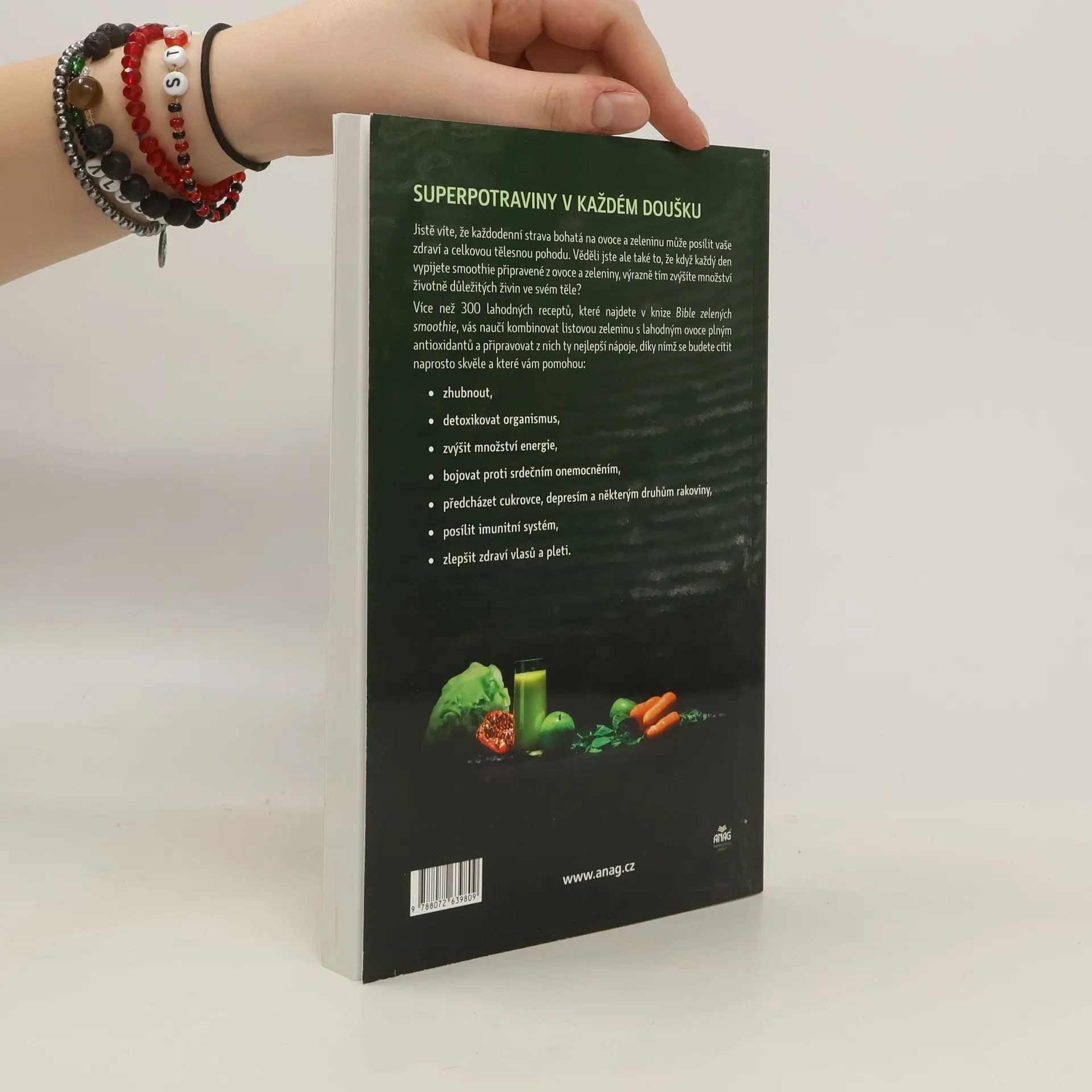 Je všeobecně známo, že každodenní strava bohatá na ovoce a zeleninu může maximalizovat vaše zdraví a pohodu. Ale věděli jste, že každodenní pití smoothie z ovoce a zeleniny může výrazně zvýšit množství záchranných živin, které vaše tělo potřebuje? Hubnutí Detoxikace těla Zvýšení energie Boj s onemocněním srdce Prevence diabetu, deprese a některých druhů rakoviny Posílení imunitního systému Zlepšení pleti a vlasů Více než 300 příjemných receptů v knize Bible zelených smoothie ukazuje, jak kombinovat listovou zelenou zeleninu a výtečné, na antioxidanty bohaté ovoce do nejvýživnějších nápojů, které si lze představit – opusťte pustinu a ciťte se úžasně vně i uvnitř!