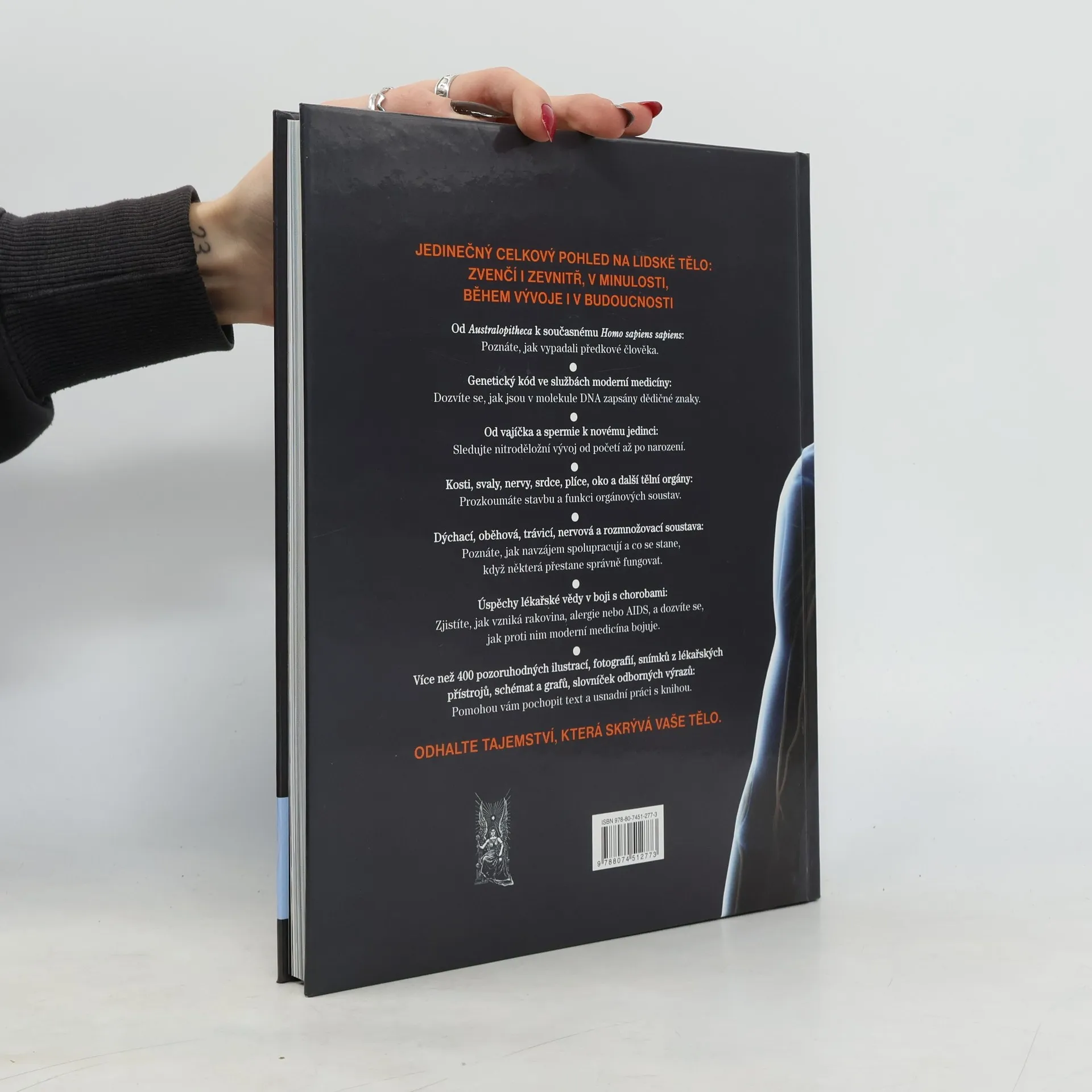 Jedinečný pohled na lidské tělo v širokém záběru vzájemných souvislostí. Kromě popisu anatomie kniha seznamuje čtenáře s pravěkými předky člověka i s vývojem lidského plodu, těhotenstvím a porodem. Věnuje pozornost genetice, modernímu výzkumu DNA, běžným nemocem a převratným metodám jejich léčby. Srozumitelné, odborně spolehlivé texty doplňují úžasné ilustrace. Odhalte tajemství, která skrývá vaše tělo.