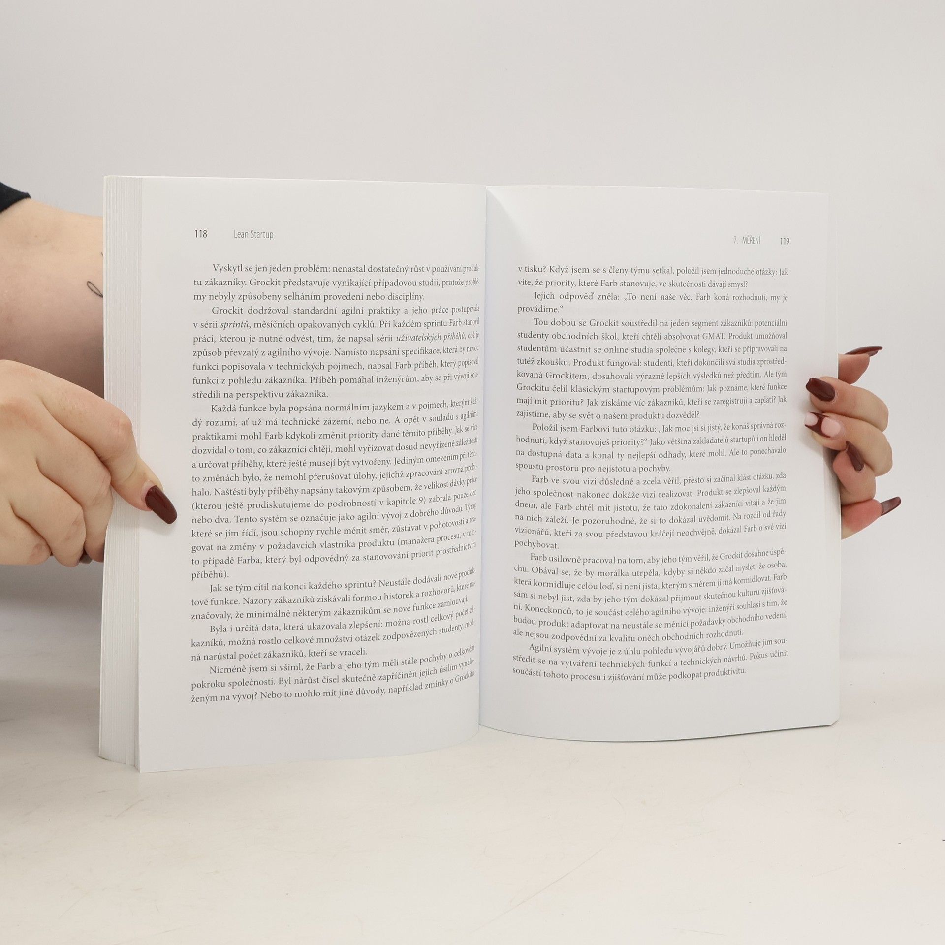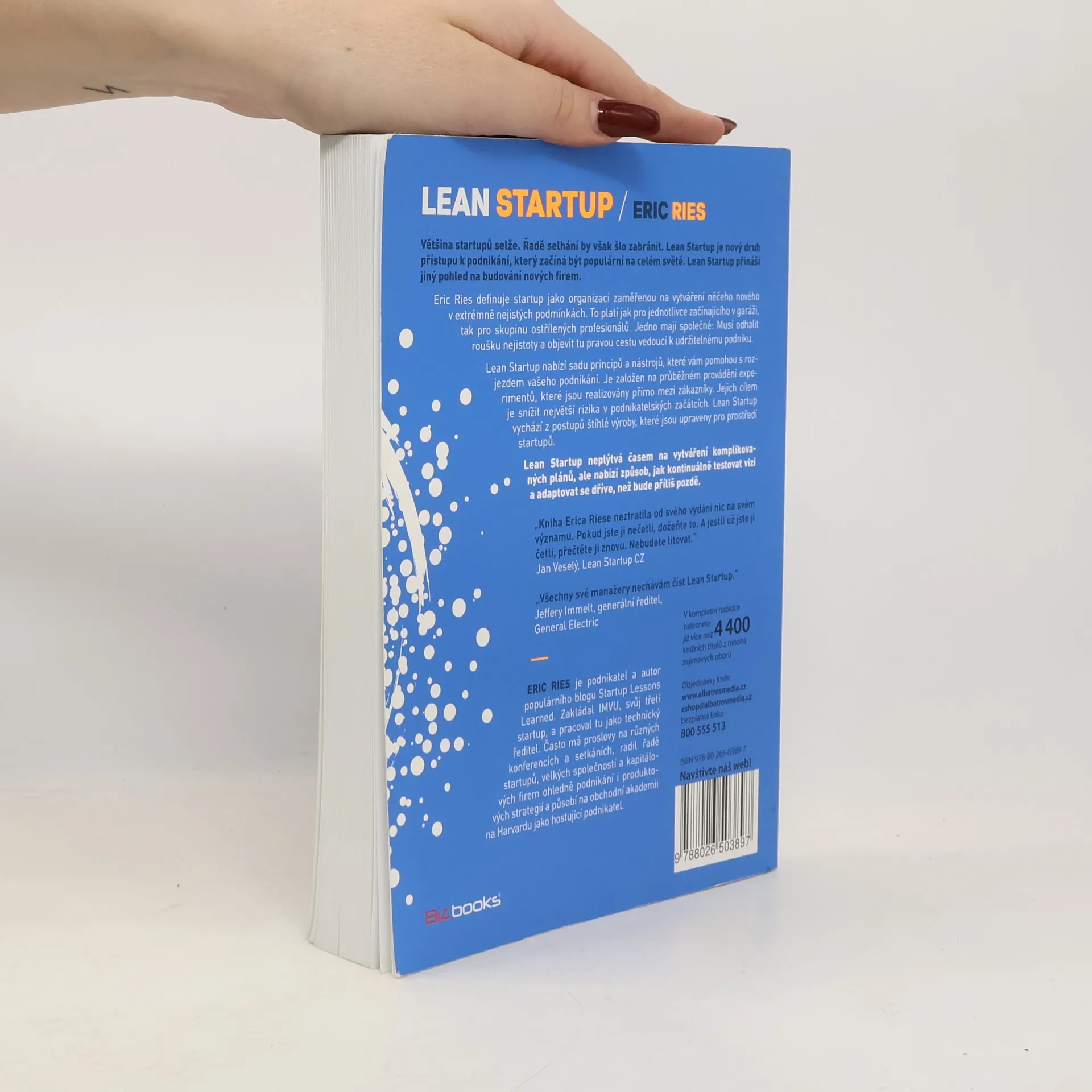 Většina startupů selže. Řadě selhání by však šlo zabránit. Lean Startup je nový druh přístupu k podnikání, který začíná být populární na celém světě. Lean Startup přináší jiný pohled na budování nových firem. Eric Ries definuje startup jako organizaci zaměřenou na vytváření něčeho nového v extrémně nejistých podmínkách. To platí jak pro jednotlivce začínajícího v garáži tak pro skupinu ostřílených profesionálů. Jedno mají společné: musí odhalit roušku nejistoty a objevit tu pravou cestu vedoucí k udržitelnému podniku. Lean Startup vychovává společnosti, které jsou kapitálově úspěšnější a lépe využívají lidskou kreativitu. Poučen štíhlou výrobou spoléhá na „ověřená zjištění“, rychlé vědecké experimentování i na řadu neintuitivních praktik, které zkracují vývojářské produktové cykly, měří skutečný a reálný pokrok bez povrchních metrik a pomáhají zjistit, co zákazníci skutečně chtějí. Lean Startup neplýtvá časem na vytváření komplikovaných plánů, ale nabízí způsob, jak kontinuálně testovat vizi a adaptovat se dříve, než bude příliš pozdě.