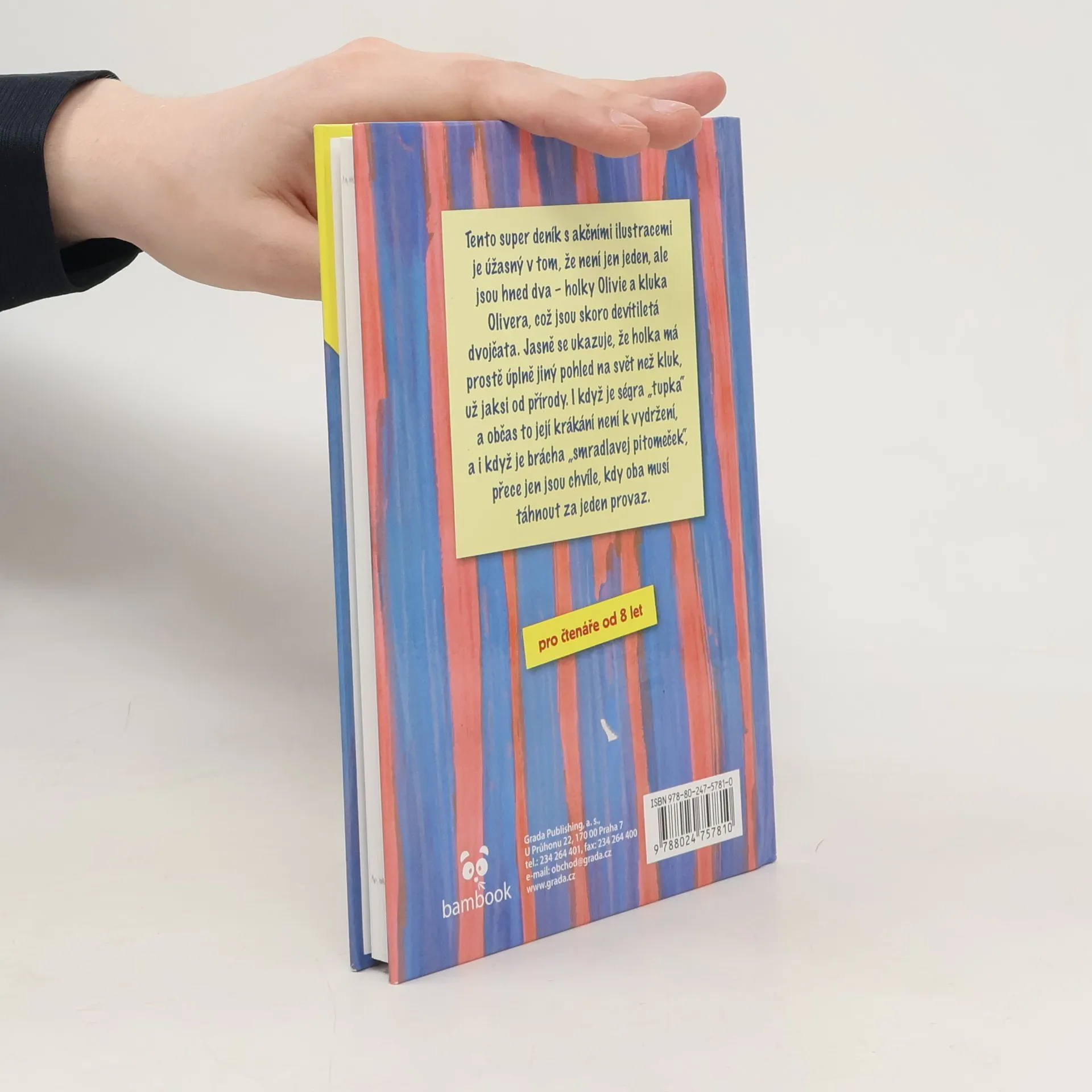 Tento super deník s akčními ilustracemi je úžasný v tom, že není jen jeden, ale jsou hned dva – holky Olivie a kluka Olivera, což jsou skoro devítiletá dvojčata. Jasně se ukazuje, že holka má prostě úplně jiný pohled na svět než kluk, už jaksi od přírody. I když je ségra „tupka“ a občas to její krákání není k vydržení, a i když je brácha „smradlavej pitomeček“, přece jen jsou chvíle, kdy oba musí táhnout za jeden provaz. Ne každý si vede deník a ne každý je rád, když si ho vést musí. Oliver a Olivie dostali od paní psycholožky za úkol, aby si takový deník vedli a pravidelně si tam psali všechno, co je napadne. Vzhledem k tomu, že Olivie je vzorná školačka, vrhne se do úkolu s nadšením. Na rozdíl od bráchy Olivera „kterej je úplně tupej“. Oba od maminky dostanou sešit a oba si tam dobrovolně, nebo pod nátlakem, začínají psát různé příhody nejen ze školy. A že mají čerství třeťáci zážitků fůru, to se rozumí samo sebou. Třeba když třídní Měchotka vyvádí a ječí jako na lesy nebo když se maminka rozhodne udělit sourozencům „otravné“ hodinové kázání. A co teprve „veleakční“ oslava narozenin!