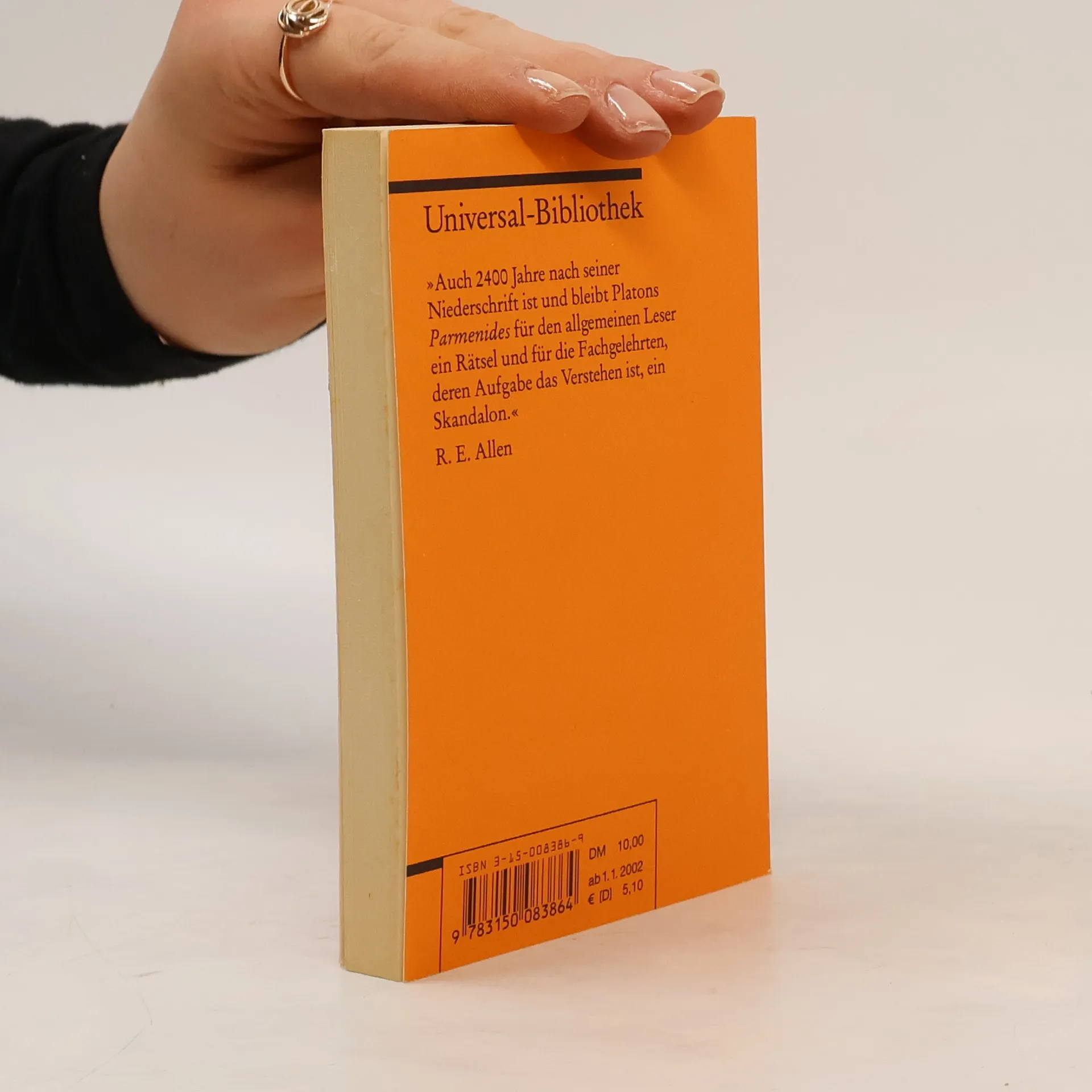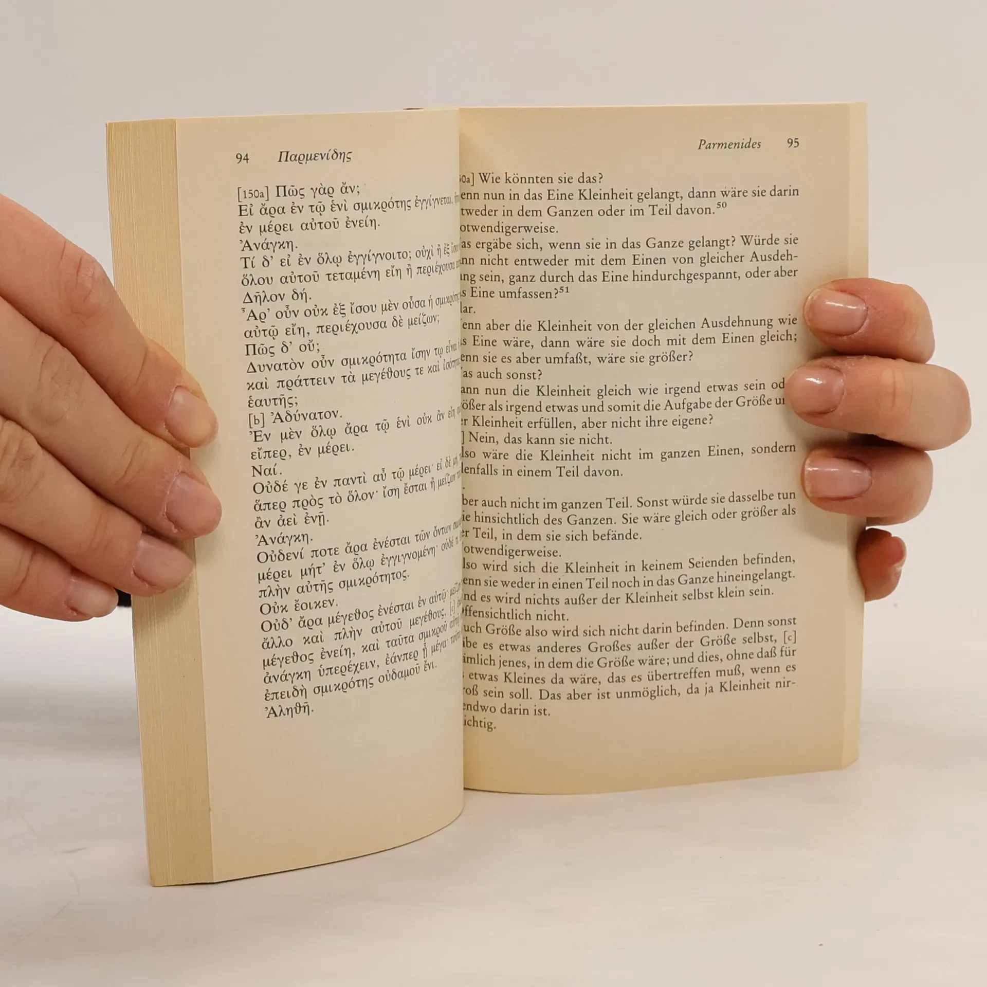 Nirgends sonst hat sich Platon den mit seiner Ideenlehre gegebenen Problemen so ausführlich und ausdrücklich gestellt wie in diesem Dialog, über den in der Forschung seit Jahrzehnten kontrovers diskutiert wird und der immer wieder als Dokument einer Krise in seinem Denken gedeutet worden ist. – Der kritisch edierte griechische Text dieser zweisprachigen Ausgabe folgt Burnet; die Übersetzung wurde von Hans Günter Zekl völlig neu gestaltet. Eine Einleitung des Herausgebers, ausführliche kommentierende Anmerkungen sowie ein Register erschließen den Text, der als einer der rätselhaftesten Dialoge Platons gilt.