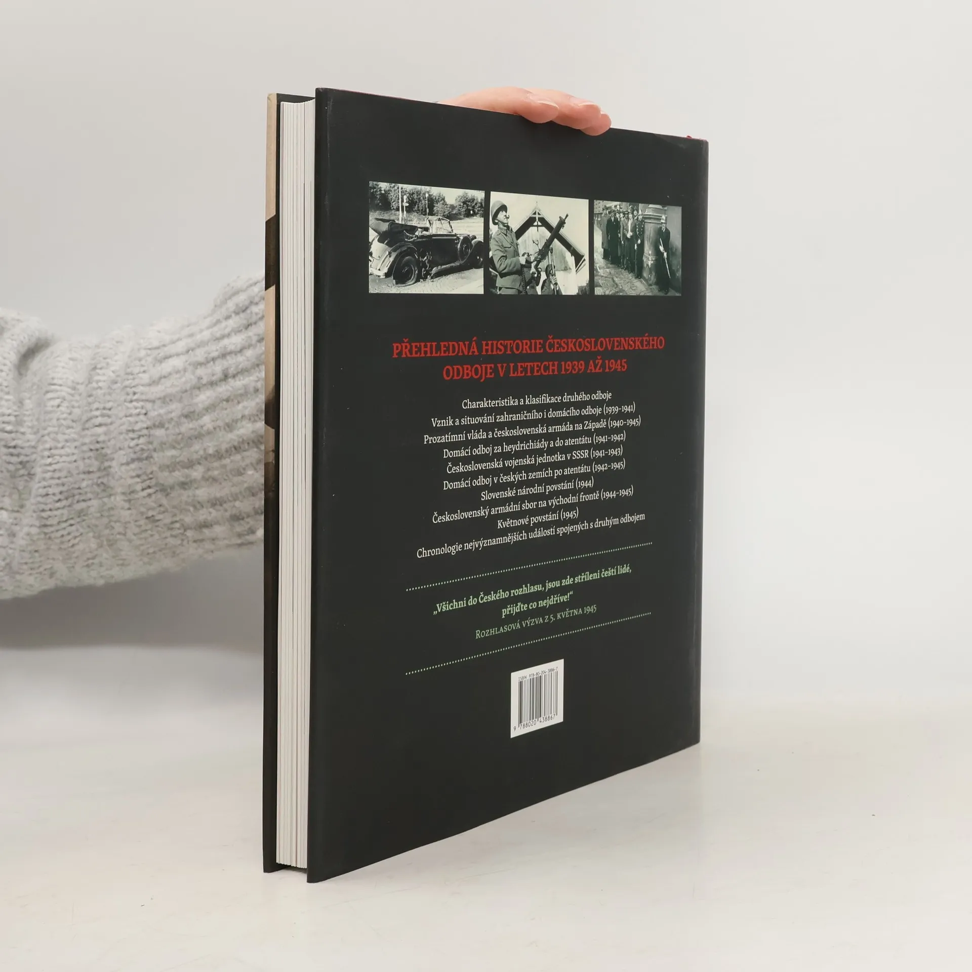 Poutavá a graficky nadstandardně výpravná publikace přehledně mapuje historii československého odboje v letech 1939 až 1945. Nevšední formou přibližuje čtenáři organizaci a činnost domácího odboje včetně dramatických okamžiků heydrichiády, popisuje boj vojáků československé zahraniční armády na západní i východní frontě a jejich účast na dalších bojištích, věnuje se nebezpečným misím parašutistů na území Protektorátu i velkým ozbrojeným vystoupením během Slovenského národního povstání v roce 1944 a květnového povstání v českých zemích o rok později. Připomíná rovněž vysokou cenu, kterou čeští a slovenští odbojáři a jejich rodiny museli zaplatit za obnovu svobody. Podobně jako předchozí úspěšný titul věnovaný čs. vojenskému odboji v letech 1914–1918 je i tato publikace učena zájemcům o moderní české a slovenské dějiny z okruhu nejširší veřejnosti. Rychlou a snadnou orientaci usnadňuje přehledná struktura knihy, v níž hlavní text doplňují poznámky, tabulky, citáty a v neposlední řadě více než 150 kvalitních fotografií. Přes svou čtivost a srozumitelnost si přitom kniha zachovává vysokou odbornou úroveň a interpretační vyváženost. Vychází u příležitosti letošního výročí konce druhé světové války.