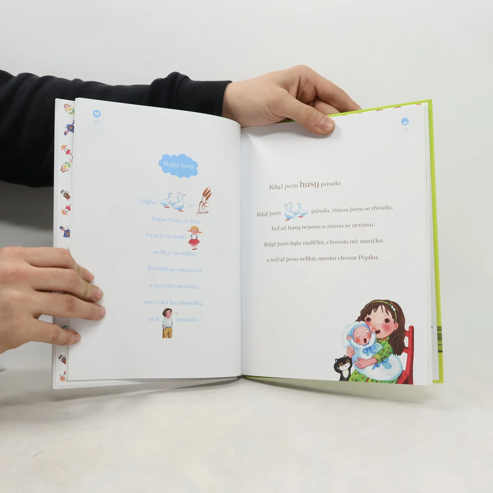 Celobarevná publikace, ve které se děti naučí slova ke známým českým lidovým písničkám a říkadlům za pomoci malovaného čtení a zároveň si je budou moci poslechnout na přibaleném CD, na kterém je s dětmi nazpívala Klára Doležalová.