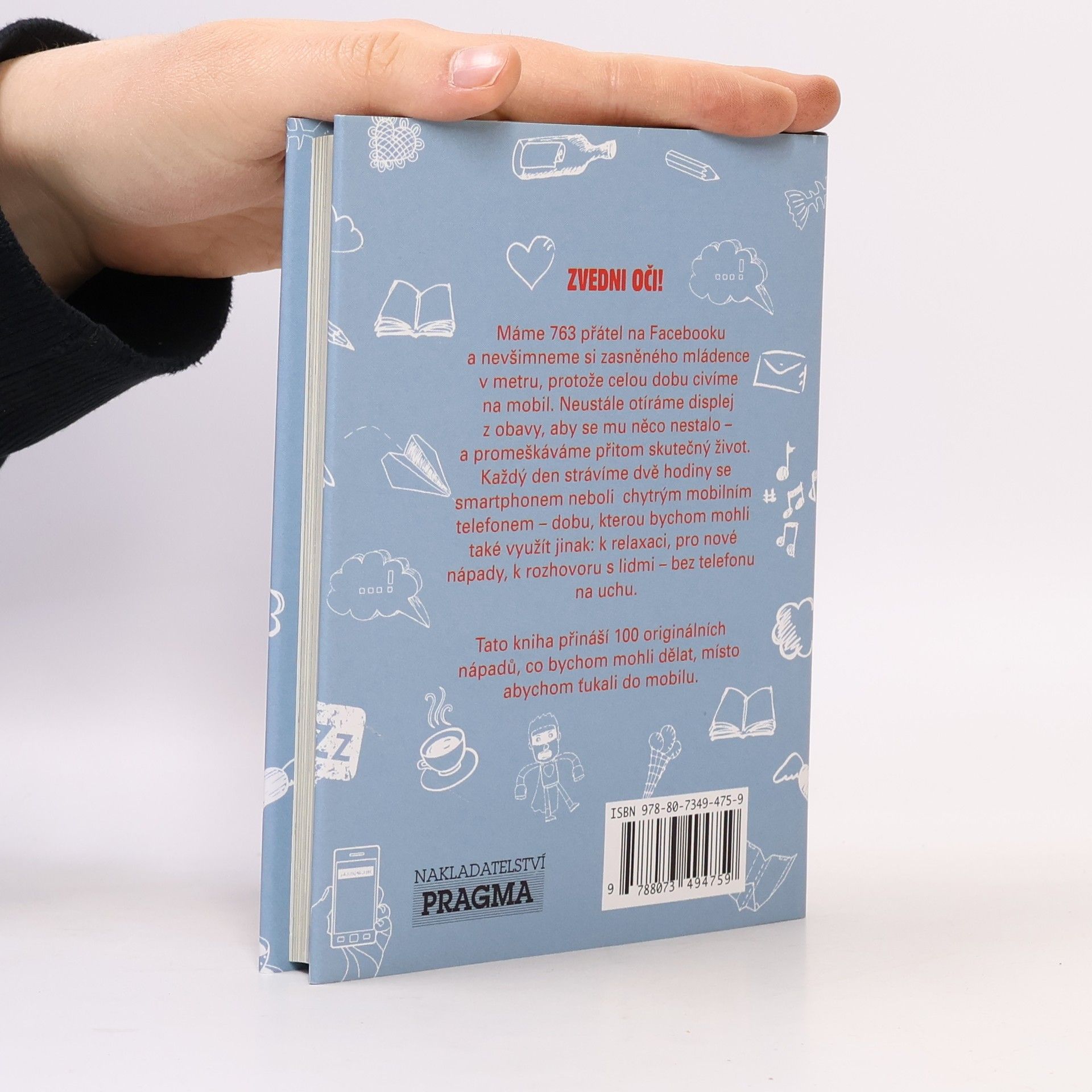 Místo abyste posílala 100 SMS můžete dělat 100 lepších věcí - Uvařit, sportovat, milovat se... Máme 763 přátel na Facebooku a nevšimneme si snivého mládence v metru, protože celou dobu civíme na mobil. Neustále otíráme displej z obavy, aby se mu něco nestalo – a promeškáváme přitom skutečný život. Každý den strávíme dvě hodiny s chytrým telefonem – dobu, kterou bychom mohli také využít jinak: k relaxaci, pro nové nápady, k rozhovoru s lidmi – bez telefonu na uchu. Tato kniha přináší 100 originálních nápadů, co bychom mohli dělat, místo abychom ťukali do mobilu.
