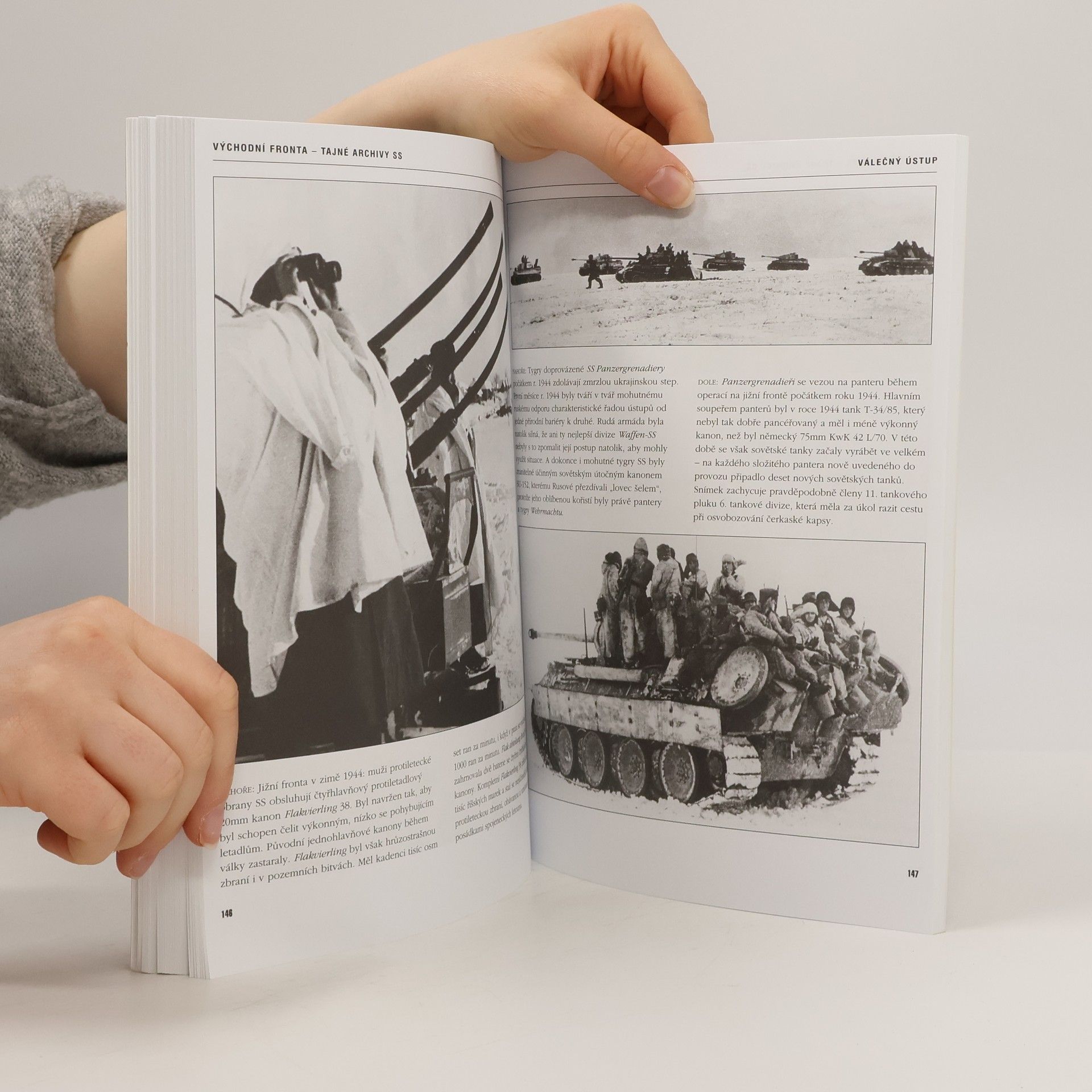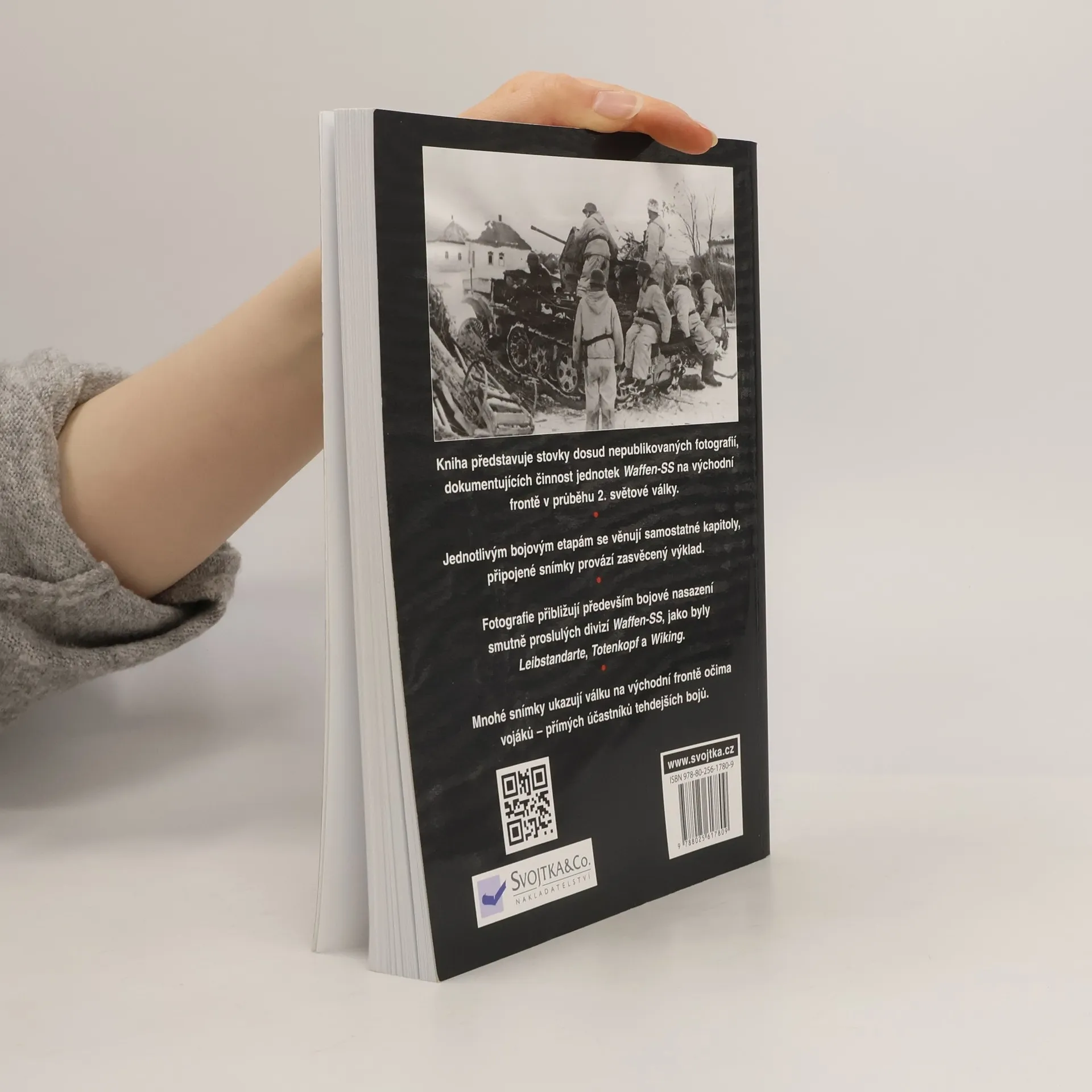 Kniha představuje stovky dosud nepublikovaných fotografií dokumentujících činnost jednotek Waffen-SS na východní frontě v průběhu 2. světové války. Jednotlivým bojovým etapám se věnují samostatné kapitoly, připojené snímky provází zasvěcený výklad. Unikátní fotografie přibližují především bojové nasazení smutně proslulých divizí Waffen-SS, jako byly Leibstandarte, Totenkopf a Wiking. Mnohé snímky ukazují válku na východní frontě očima vojáků – přímých účastníků tehdejších bojů.