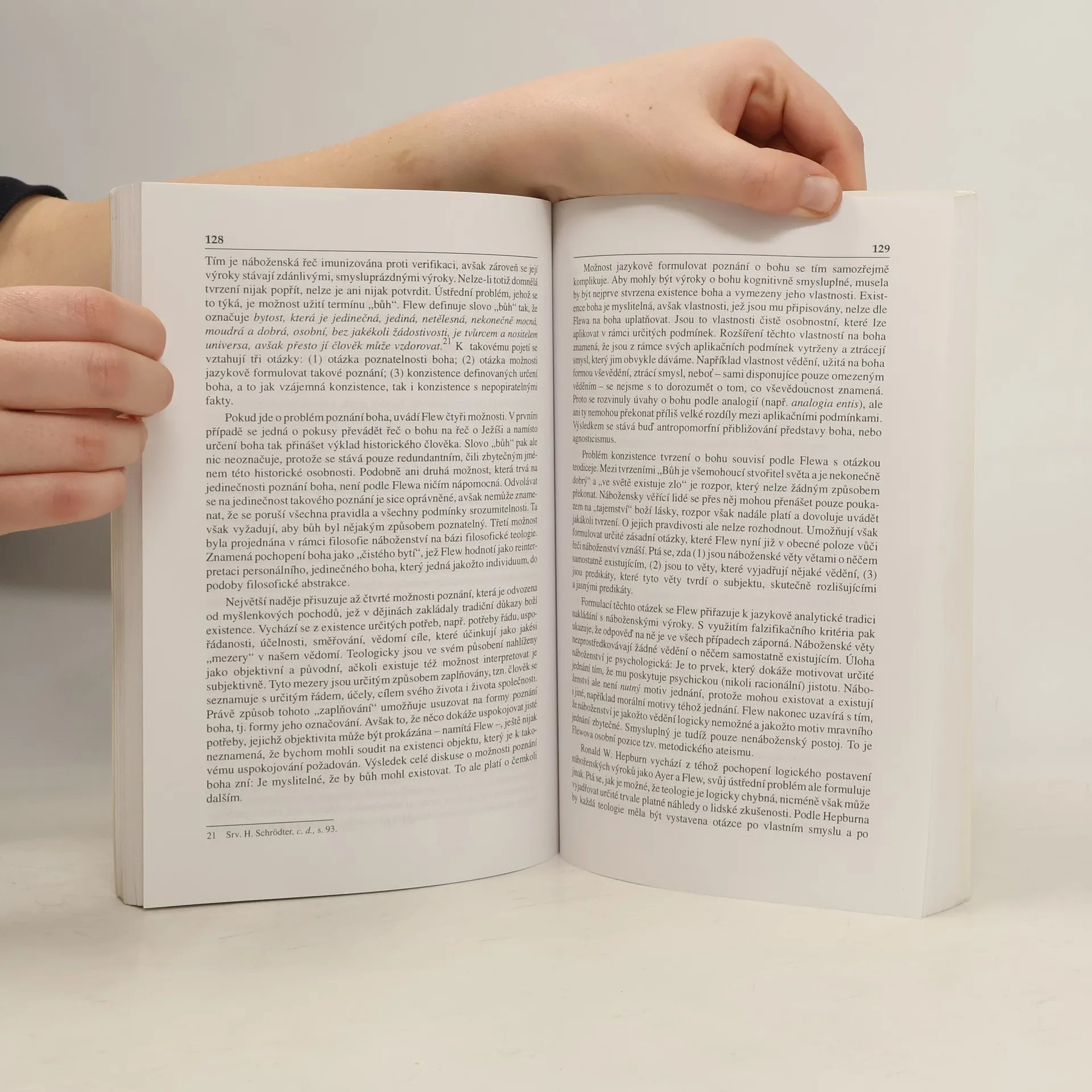 Publikace předkládá základní typologii metodologických a obsahových postojů v moderní filosofii náb oženství. Soustřeďuje se na vykreslení filosofických předpokladů jednotlivých typů a směrů filosofi e náboženství a podává jejich charakteristiky. Upozorňuje rovněž na nemalé problémy, které jsou spj aty s filosofickým vyjádřením náboženské problematiky, a pokouší se o vyjasnění vztahu mezi filosof ií náboženství a religionistikou. Značnou pozornost věnuje znázornění tradice moderní české filosof ie náboženství, která dosud nebyla popsána. Součástí knihy je rozsáhlá bibliografie monografických prací o filosofii náboženství.