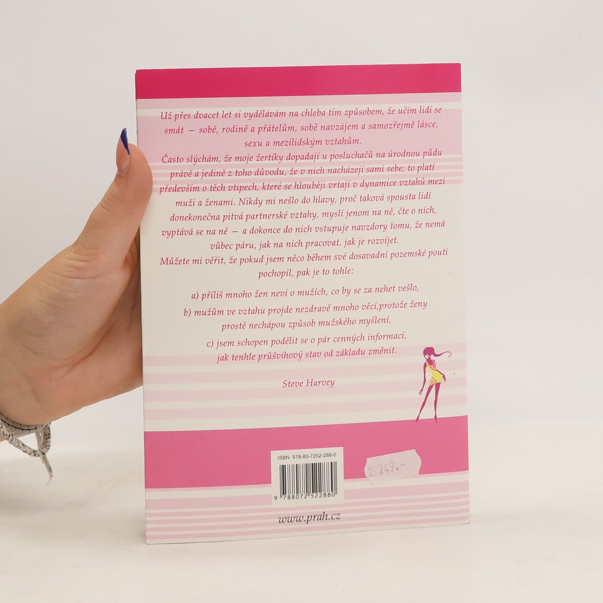 Čo si muži skutočne myslia o láske, vzťahoch, intímnostiach a vernosti. V knihe Konaj ako dáma, mysli ako muž Steve zoznamuje ženy s mužským pohľadom a objasňuje pojmy a otázky, ako sú: Deväťdesiatdňové pravidlo: Spoločnosť Ford ho vyžaduje od svojich zamestnancov. Mali by ste ho vyžadovať od svojho partnera? Ako spoznať mamičkinho synáčika a čo, ak sa to vôbec dá, s tým môžeme urobiť. Kedy ho zoznámiť s deťmi. A čo sa dá vyčítať z prvej interakcie medzi ním a vašimi deťmi. Päť otázok, ktoré by mala mužovi položiť každá žena, aby vedela, ako vážne to s ňou myslí. A ešte viac... Niekedy zábavnú, inokedy priamu knihu Konaj ako dáma, mysli ako muž si musíte prečítať, ak chcete pochopiť mužské poňatie vzťahov.