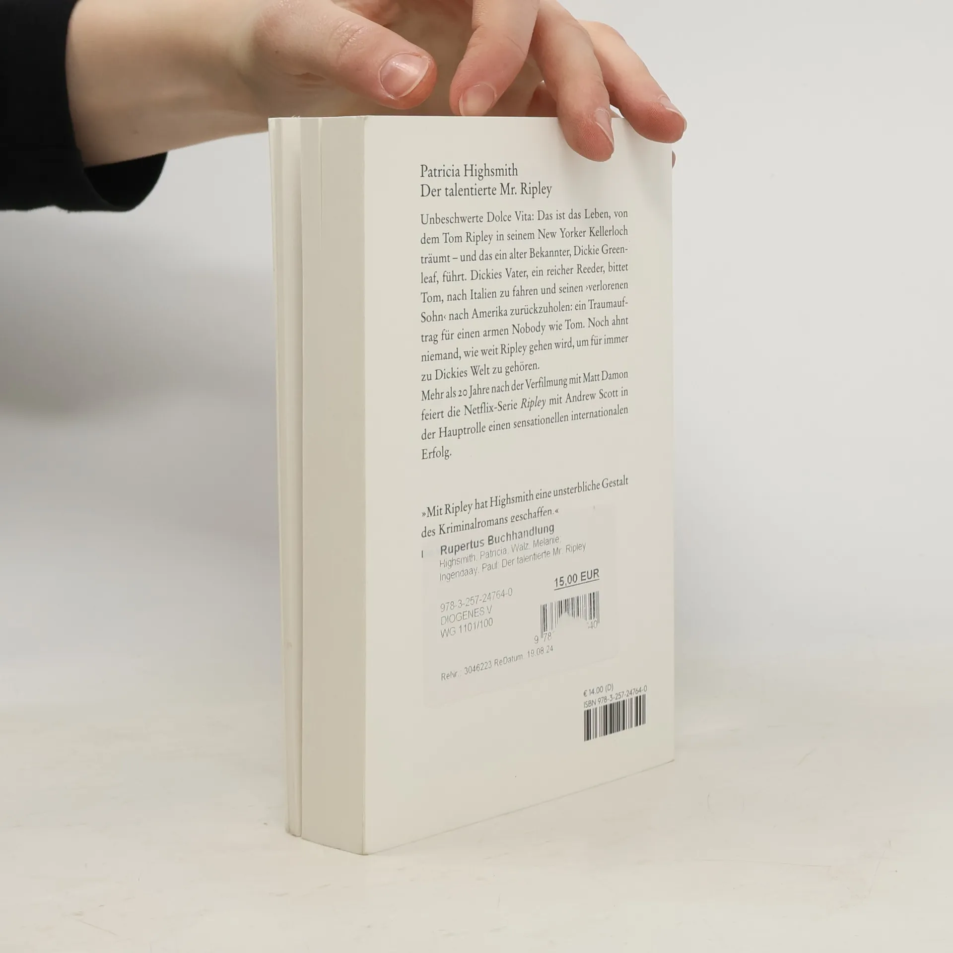 In "Unbeschwerte Dolce Vita" träumt Tom Ripley von dem Leben seines Freundes Dickie Greenleaf. Als Dickies Vater ihn nach Italien schickt, um seinen Sohn zurückzuholen, ahnt niemand, wie weit Tom gehen wird, um Teil von Dickies Welt zu werden. Der Roman inspirierte mehrere Filmadaptionen, darunter das Remake von 2000.