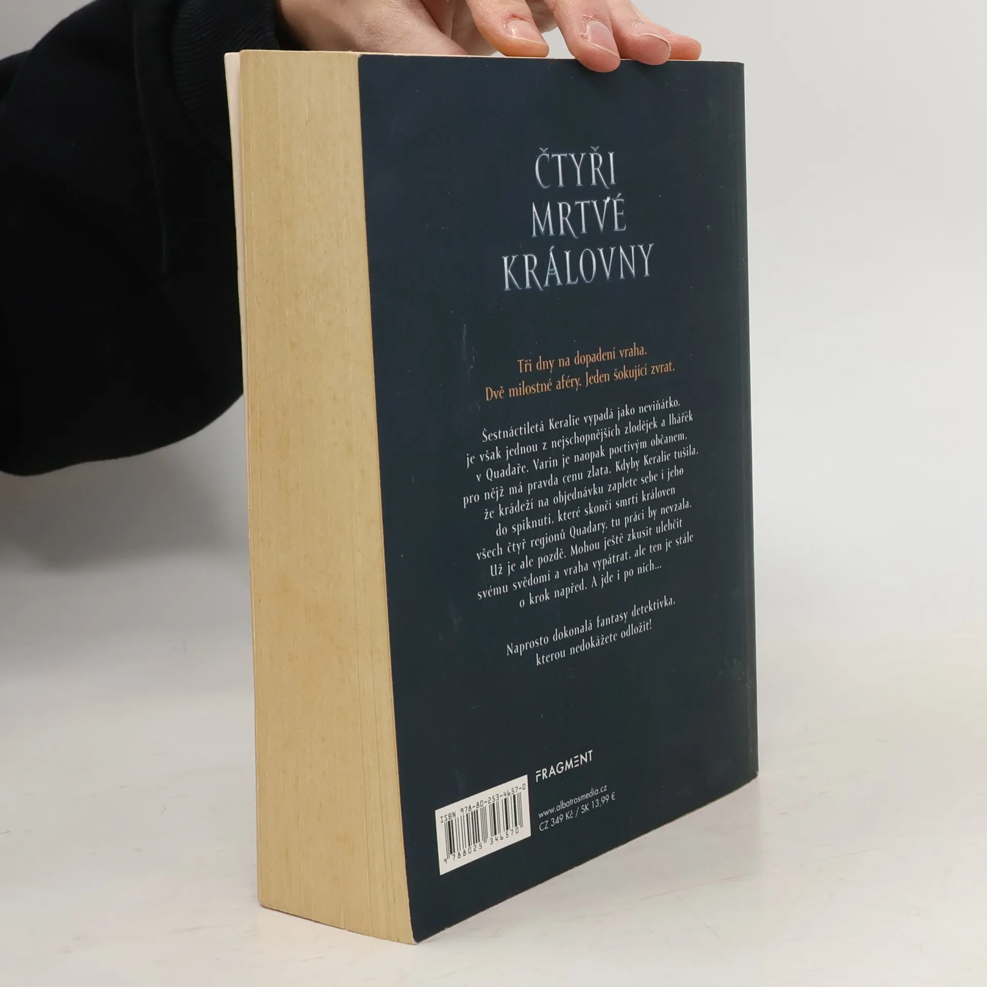 Dechberoucí pátrání po vrahovi čtyř královen. Čtyři mrtvé královny. Tři dny na dopadení vraha. Dvě milostné aféry. Jeden šokující zvrat. Šestnáctiletá Keralie vypadá jako neviňátko, ve skutečnosti je ale jednou z nejschopnějších zlodějek a lhářek v Quadaře. Varin je jejím dokonalým protikladem – poctivým a bezúhonným občanem, pro něhož má pravda cenu zlata. Kdyby Keralie tušila, že krádeží na objednávku zaplete sebe i jeho do spiknutí, které skončí smrtí královen všech čtyř regionů Quadary, tu práci by nepřijala. Teď už je ale pozdě. Pokud chtějí ulehčit svému svědomí, musí přijít na to, kdo za rafinovanými vraždami stojí. Zemí se šíří panika a vrah je pořád jeden krok před nimi. A jde i po nich... Naprosto dokonalá fantasy detektivka, kterou nedokážete odložit!