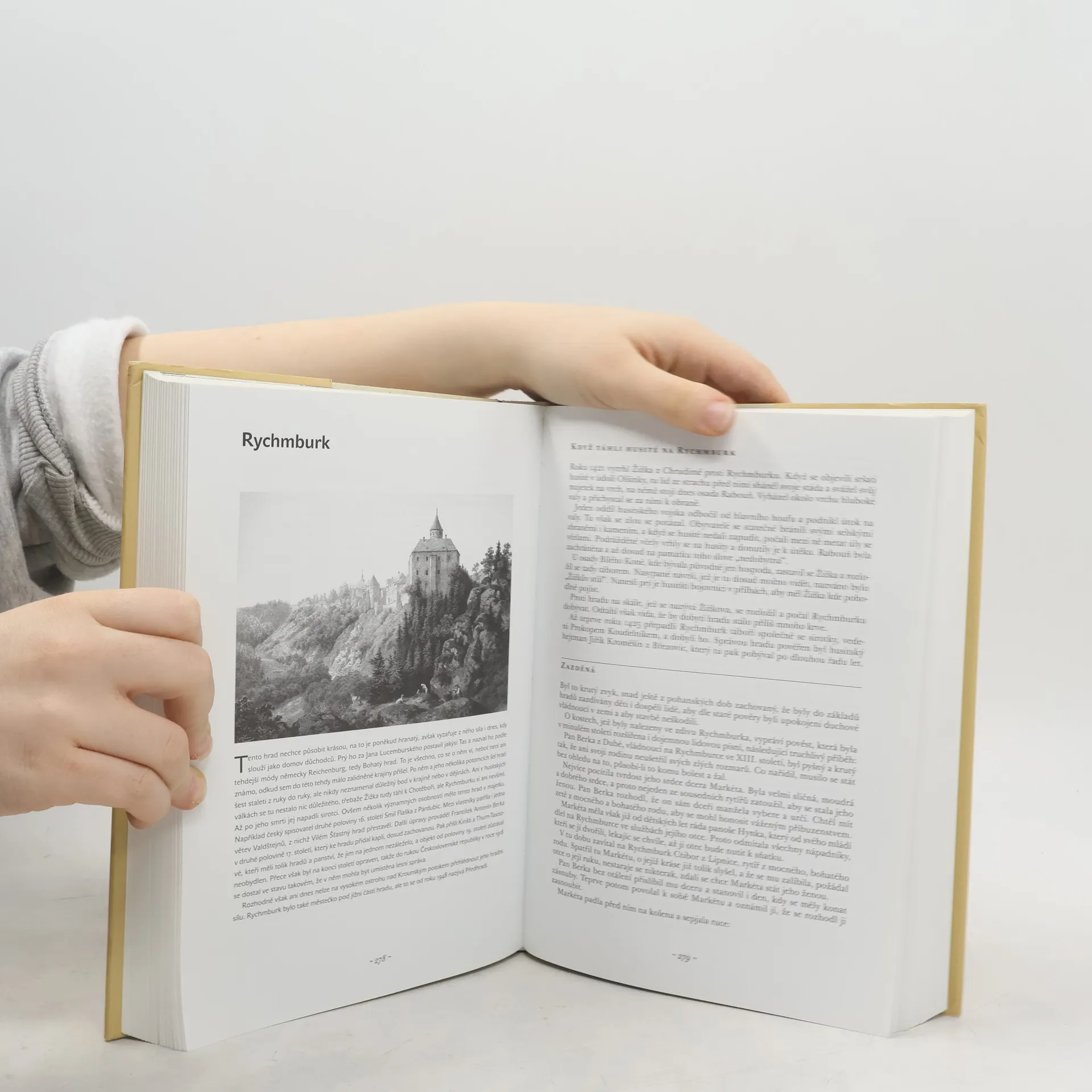 Výpravná kniha obsahuje převyprávěné pověsti z českých hradů a zámků z pera známého meziválečného spisovatele a pedagoga, doplněné pověstmi z moravského a slezského regionu sebrané Naďou Moyzesovou. Kniha umožňuje čtenáři seznámit se blíže s atmosférou řady hradů, zámků a tvrzí na území naší republiky pomocí starých příběhů o jejich zvláštnostech a o osobnostech, které v nich žily. Každou zmíněnou lokalitu uvádí krátké shrnutí jejích osudů dovedené až do současnosti a dobová ilustrace, nejčastěji z poloviny 20. století. Pověsti pocházejí nejen z klasického fondu Kosmovy kroniky, ale také z husitské a rudolfínské doby a zalidňují je nejen historické, ale také nadpřirozené bytosti.
