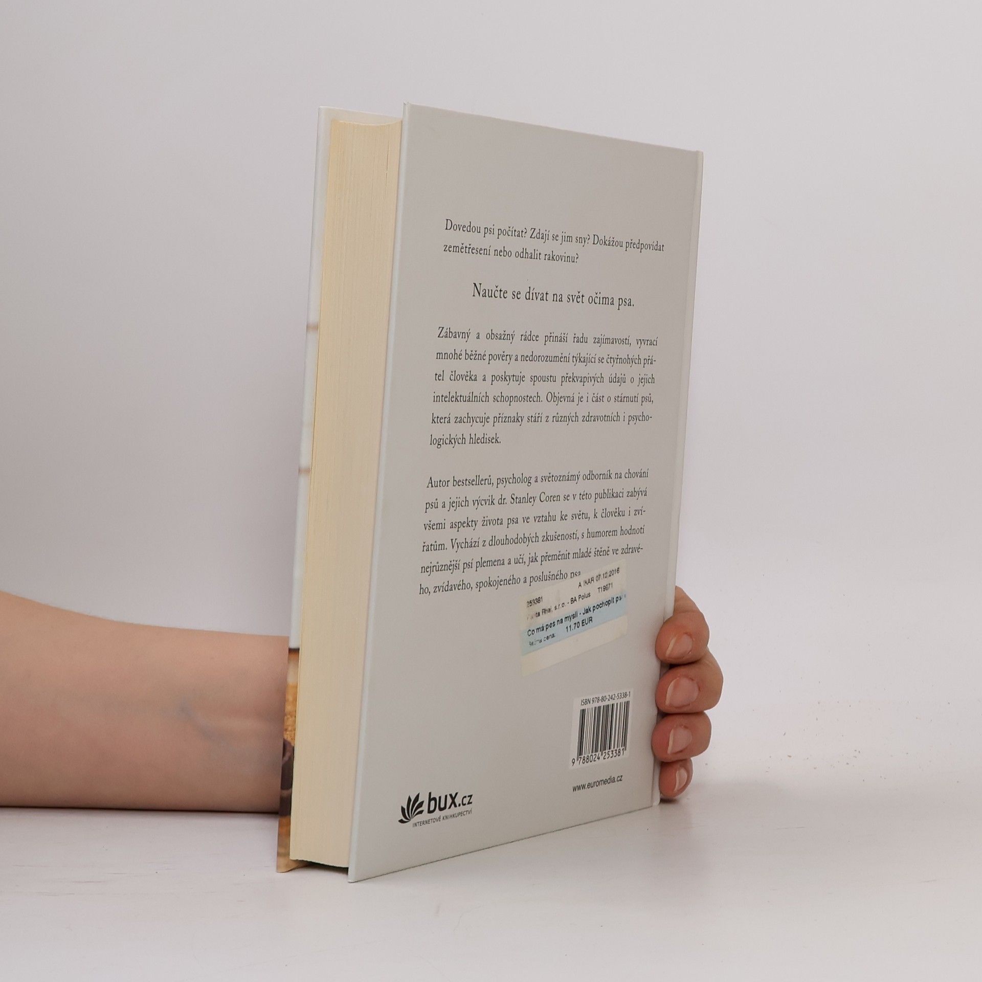 Zábavný a obsažný rádce od předního světoznámého odborníka přináší řadu zajímavostí, vyvrací mnohé běžné pověry a nedorozumění týkající se čtyřnohých přátel člověka a poskytuje spoustu překvapivých údajů o jejich intelektuálních schopnostech. Objevná je i část o stárnutí psů, která zachycuje příznaky stáří z různých zdravotních i psychologických hledisek.