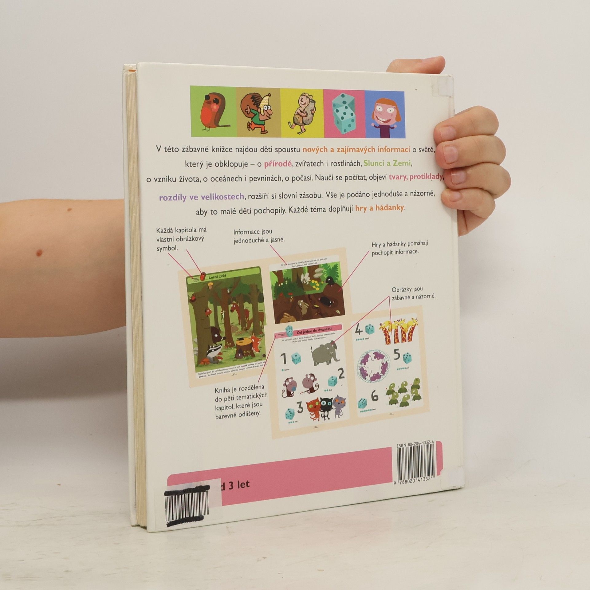 Po úspěchu dětské encyklopedie Už vím proč a jak přicházíme s novou všeobecnou ilustrovanou encyklopedií z produkce slavného francouzského nakladatelství Larousse. Děti od tří let v ní najdou spoustu nových a zajímavých informací o světě, který je obklopuje o přírodě, zvířatech i rostlinách, Slunci a planetách, o Zemi, o vzniku života, o oceánech i pevninách, o počasí. Naučí se počítat, objeví tvary, protiklady, rozdíly ve velikostech, rozšíří si slovní zásobu. Vše je podáno jednoduše a názorně, aby to malé děti pochopily. Každé téma doplňují hry a hádanky. Děti si také užijí spoustu legrace nad veselými ilustracemi.