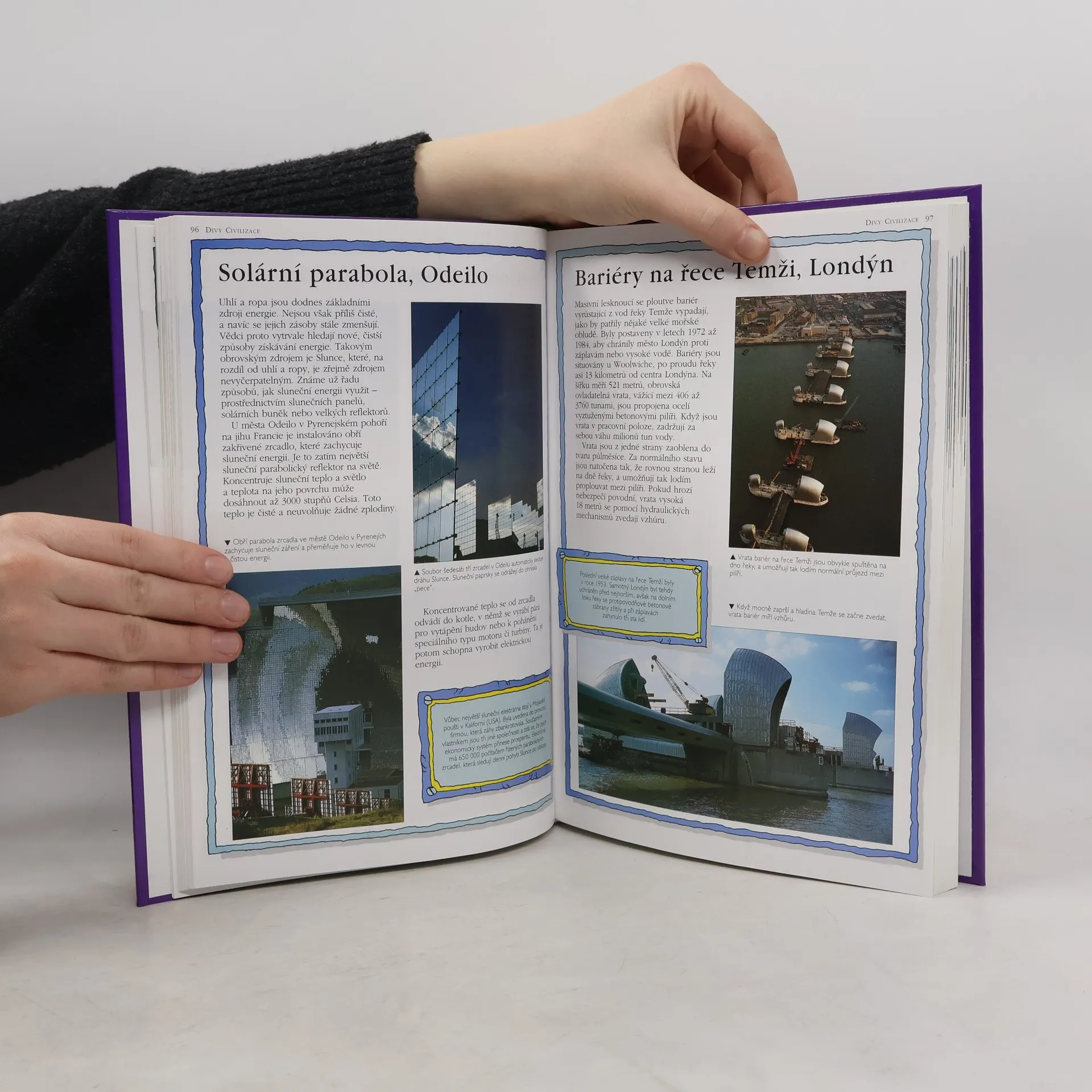 Kniha zachycuje stavby chrámů, tunelů, přehrad i vesmírných korábů - děl, která změnila krajinu i běh dějin. Stavby jsou řazeny chronologicky podle doby vzniku. Mezi počáteční díla patří Sedm divů světa, pyramidy v Gíze, Akropolis, Velká čínská zeď; následuje Tádž Mahál, Eddystoneský maják, Panamský průplav a v závěru je uvedena například Opera v Sydney, Amundsen-Scottova antarktická základna nebo podmořský tunel mezi Francií a Anglií. U každé stavby je uvedena příčina vzniku, délka a okolnosti stavby i zajímavé perličky. Nechybí četné fotografie a dobové dokumenty. (zdroj: Databáze Národní knihovny ČR)