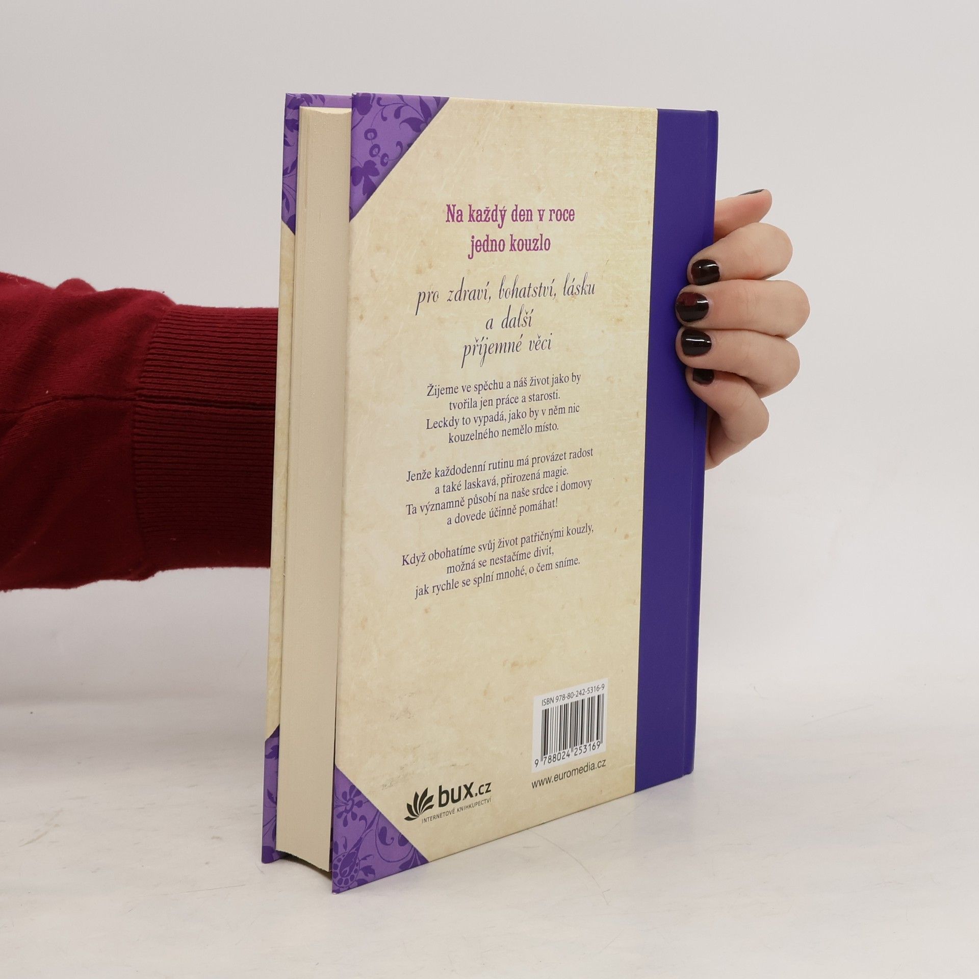 Na každý den v roce jedno kouzlo pro zdraví, bohatství, lásku a další příjemné věci. Žijeme ve spěchu a náš život jako by tvořila jen práce a starosti. Leckdy to vypadá, jako by v něm nic kouzelného nemělo místo. Jenže každodenní rutinu má provázet radost a také laskavá, přirozená magie. Ta významně působí na naše srdce i domovy a dovede účinně pomáhat! Když obohatíme svůj život patřičnými kouzly, možná se nestačíme divit, jak se potěšíme a jak rychle se splní mnohé, o čem sníme.