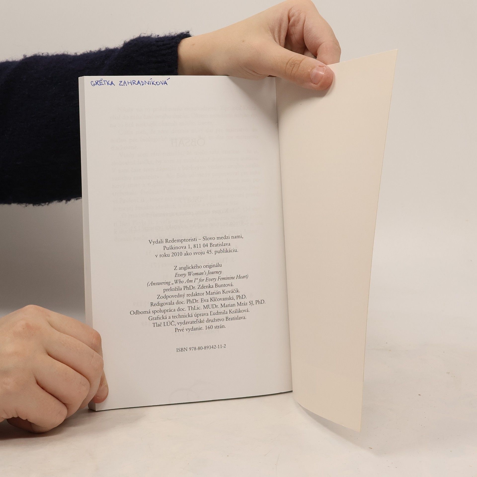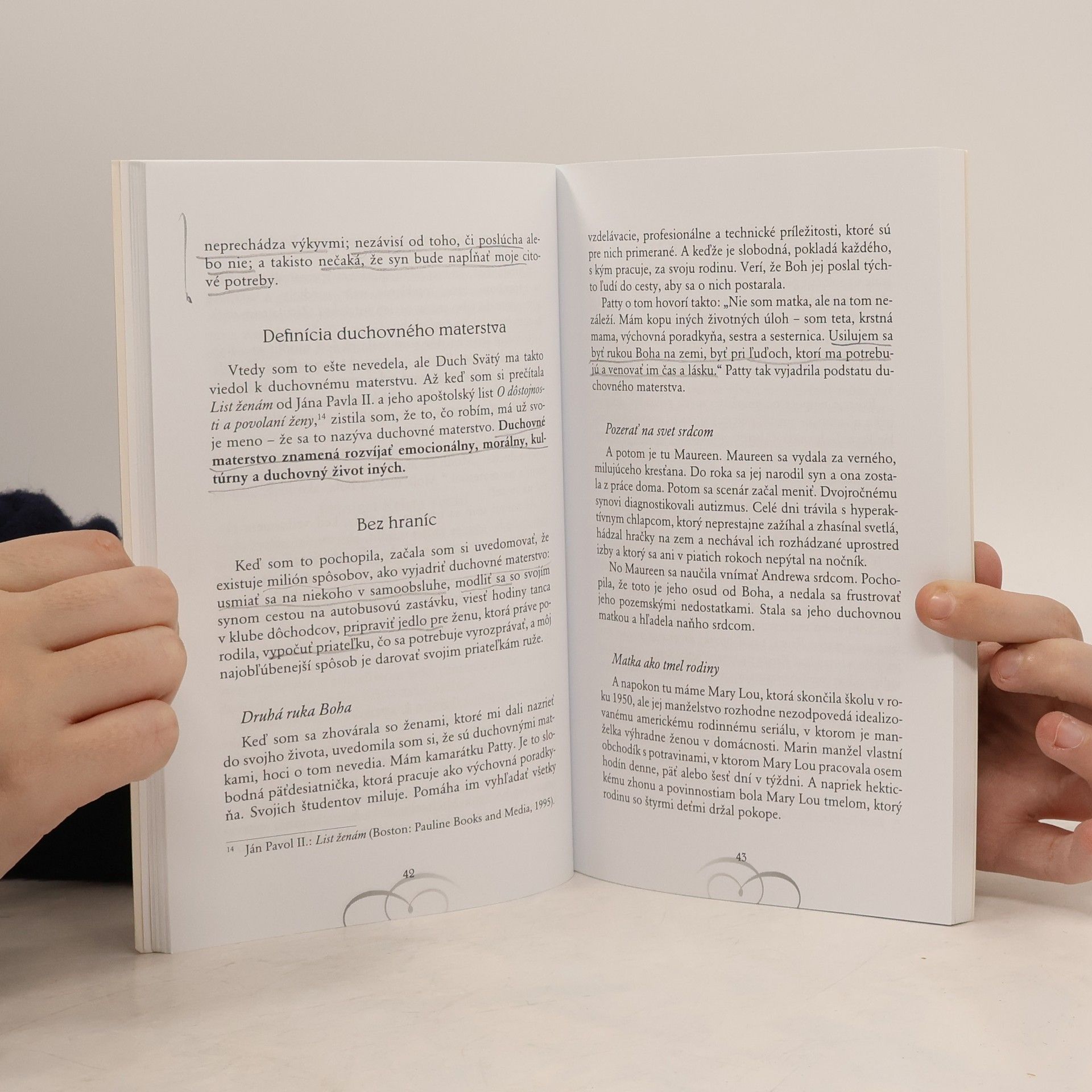 „Kto vlastne som?“ Taká otázka nám môže pripadať ako banálna, takmer detinská fráza. Ženy si na ňu napokon odpovedajú samy: „Som matka.“ „Som účtovníčka.“ „Som rehoľná sestra.“ „Pravdaže viem, kto som...“ A predsa to nevieme. V kútiku každého ženského srdca sa skrýva túžba po niečom viac. „Som iba matka? Iba manželka? Iba učiteľka či ošetrovateľka? Ak nie som len toto, kto vlastne som?“ Objaviť v ženskom srdci a duši ten najhlbší zmysel pre identitu sa nedá na prvýkrát. Je to cesta. Ženy si v rôznych fázach svojho života stále znova kladú otázku: „Kto som?“, pretože identita ženy nie je stojatá voda v jazierku. Je ako dravá rieka, čo sa rúti od jedného ohybu k ďalšiemu a vytvára si čoraz hlbšie a širšie koryto. Ak vám niekedy v živote zišla na um rovnaká otázka, vrhnite sa do jej prudkého toku. Voda vám možno bude v prvom okamihu pripadať studená, no keď sa s dravou riekou spriatelíte, donesie vás na miesta, o ktorých ste nemali tušenia. A nielen to – naučíte sa mať z cesty potešenie.