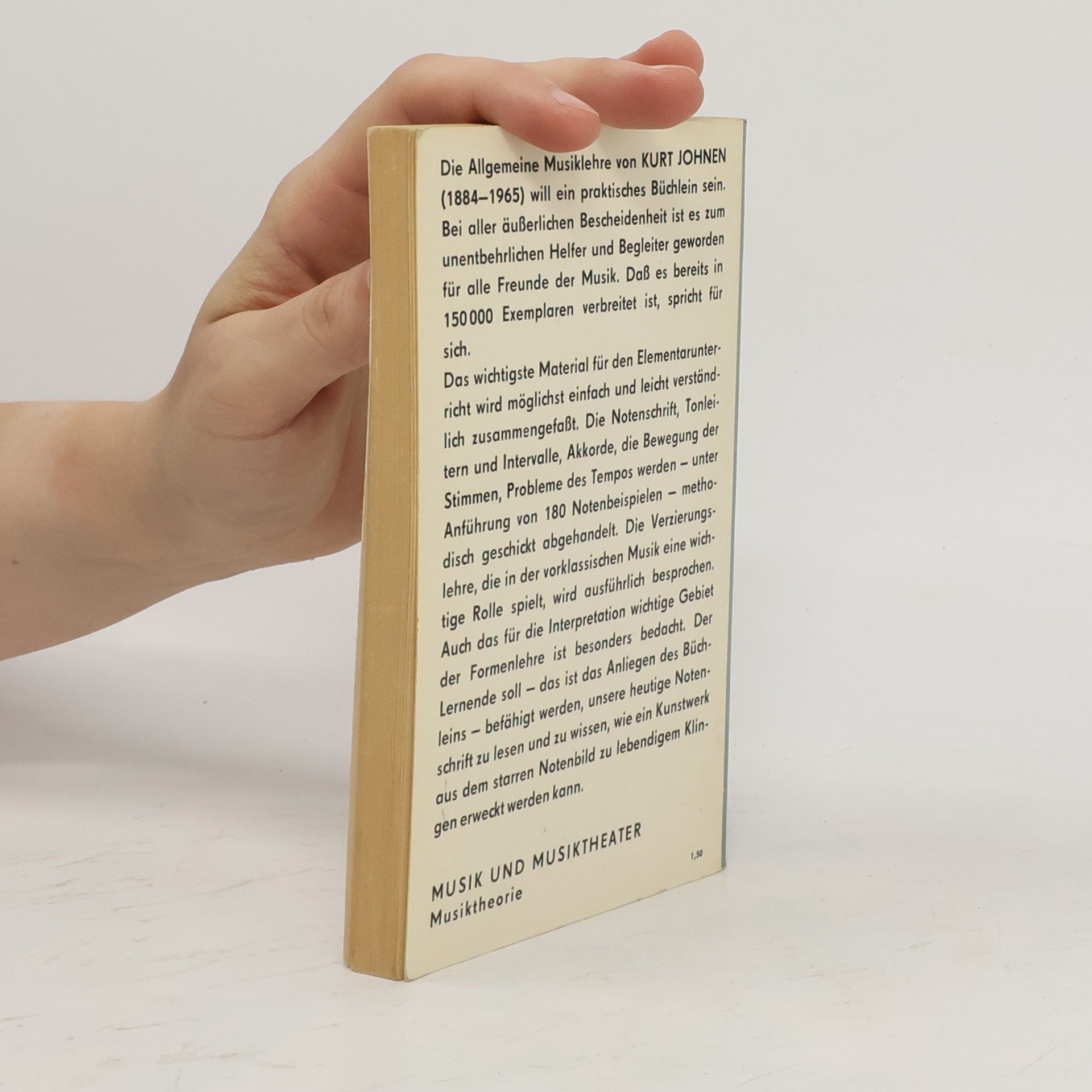 Die kurze, allgemeine Musiklehre von Kurt Johnen ist ein über viele Jahre eingeführtes, kleines Standardwerk. Sie umfasst die elementaren Begriffe der Notenschrift und geht auf die Grundlagen der Harmonie ein, auf Tonleitern, Intervalle, Akkorde, Stimmbewegung. Daneben werden die für die musikalische Praxis wichtigen Verzierungen und Vortragsbezeichnungen erläutert und musikalische Formen erklärt. Eine leicht verständliche Einführung für das elementare Verstehen klassischer Musik.