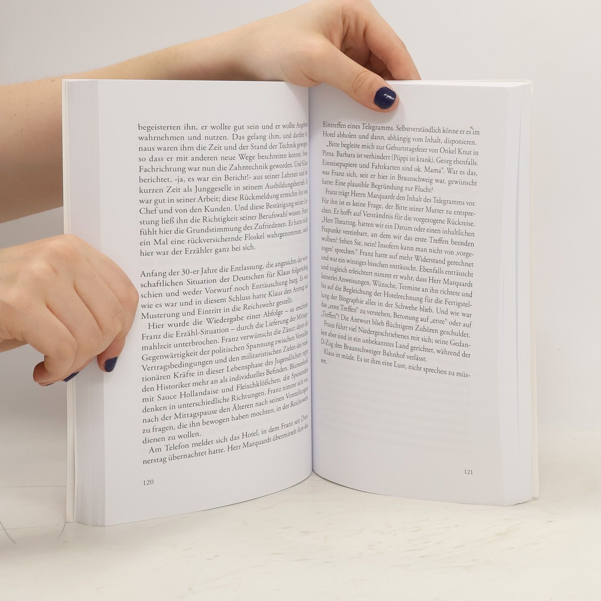 Im Sommer 1976 kreuzen sich die Wege zweier Menschen Franz, gerade 30 Jahre alt und ehemaliges Mitglied des SDS, Lehrer mit Berufsverbot in Heidelberg, und Klaus, Jahrgang 1912, Zahntechnikermeister mit eigenem Unternehmen in Braunschweig. Die Handlung spielt in Braunschweig und in Heidelberg. Franz bietet in einem überregionalen Blatt seine Dienste als Biograph an. Klaus nimmt Kontakt zu Franz auf. Die Verknüpfung durch das Projekt Biographie verhindert für Klaus einen Rückzug ins Schweigen, fordert Franz heraus, eigene Positionen zu hinterfragen. Beide gewinnen durch das Gespräch Selbstdistanz, können so ihre Standpunkte neu bewerten. Franz findet mit seiner chilenischen Freundin Micaela ein alter Ego im Umgang mit dem moralischen Versagen der älteren Generation.