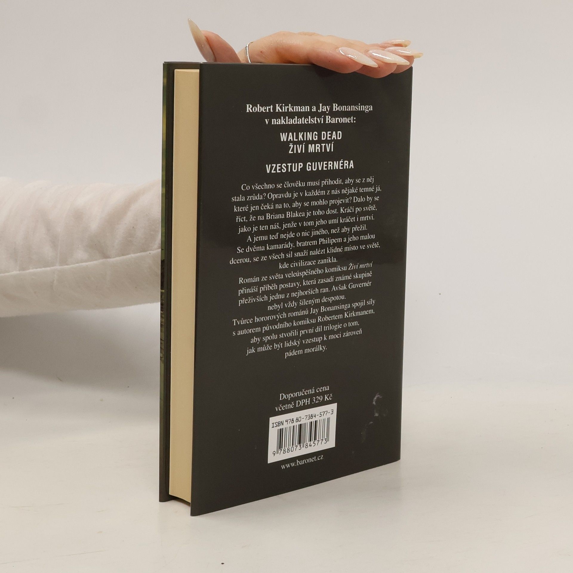 Co všechno se člověku musí přihodit, aby se z něj stala zrůda? Opravdu je v každém z nás nějaké temné já, které jen čeká na to, aby se mohlo projevit? Skoro by se dalo říct, že na Briana Blakea je toho dost. Kráčí po světě jako je ten náš, jenže v tom jeho umí kráčet i mrtví. A jemu teď nejde o nic jiného, než aby přežil. Se dvěma kamarády a bratrem Phillipem s malou dcerou se ze všech sil snaží nalézt klidné místo ve světě, kde civilizace zanikla. Román ze světa veleúspěšného komiksu Živí mrtví přináší příběh postavy, která zasadí známé skupině přeživších jednu z nejhorších ran. Avšak Guvernér nebyl vždy šíleným despotou. Tvůrce hororových románů Jay Bonansinga spojil síly s autorem původního komiksu Robertem Kirkmanem, aby spolu stvořili první díl trilogie o tom, jak může být lidský vzestup k moci zároveň pádem jeho morálky.